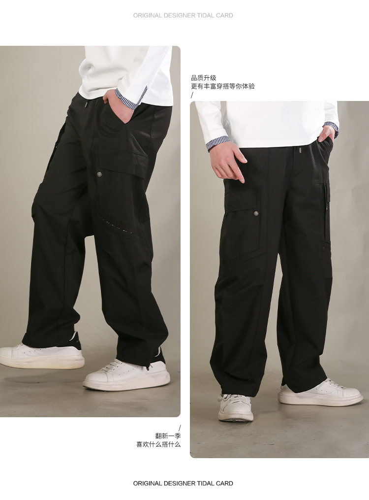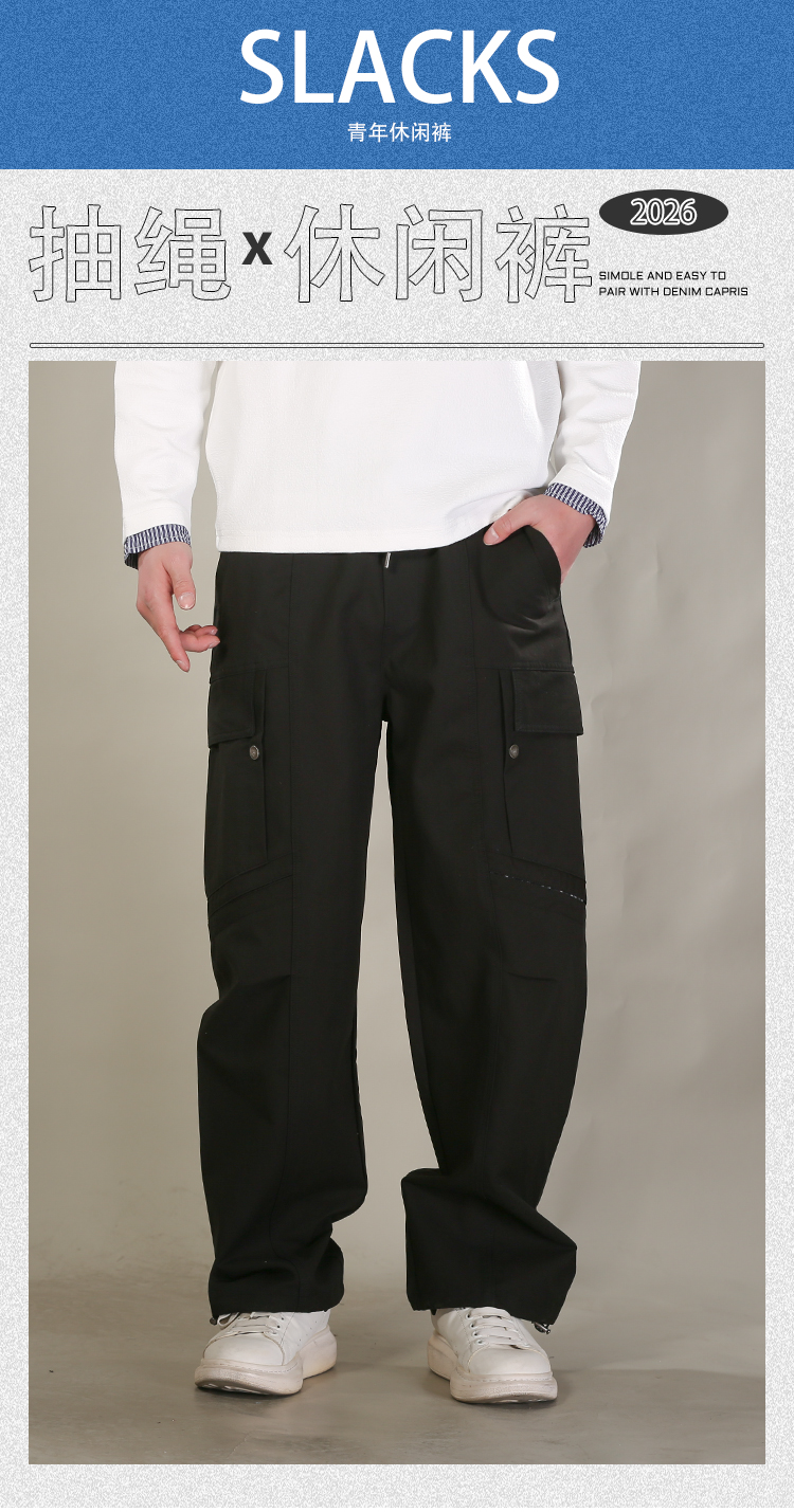 DRONKOO 2026 抽绳松紧腰前多破缝结构活页户外风中厚工装长裤