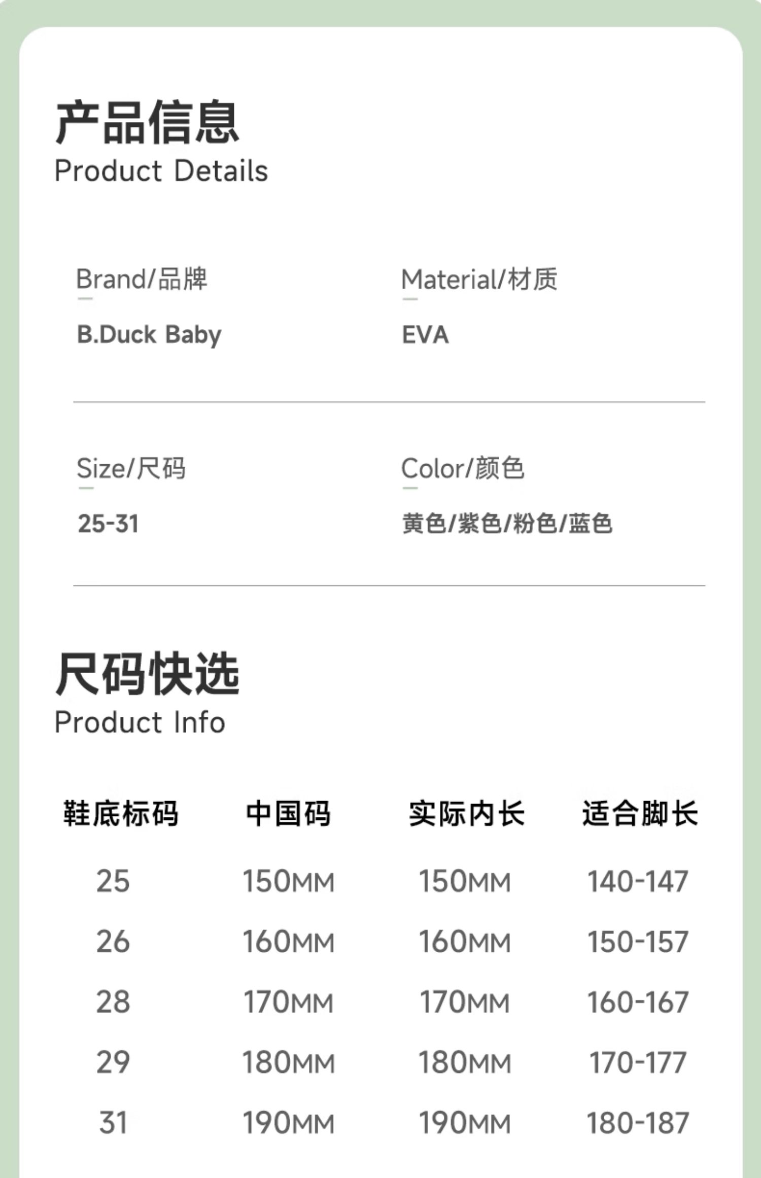 B.Duck小黄鸭童鞋四季儿童凉拖鞋25-31 BY1615929