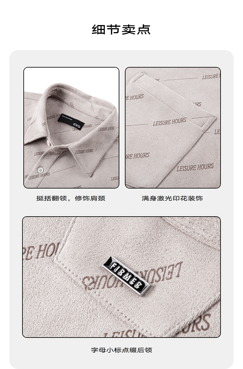 GXG男装 双色衬衫满身激光印花亲肤长袖衬衫外套 热卖衬衫 GEX10314713