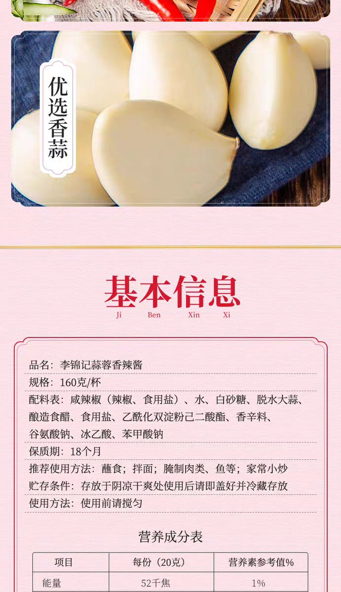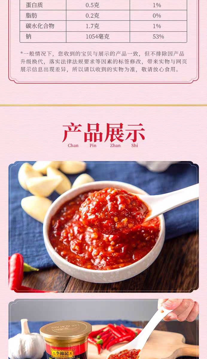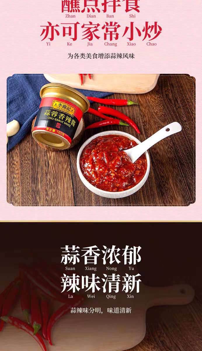 160g 李锦记 蒜蓉香辣酱 炒菜凉拌火锅腌制鱼肉蒜蓉味蘸酱调味酱