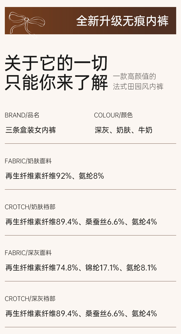 美奈川三条盒装女内裤(深灰+奶肤+牛奶)DK07356