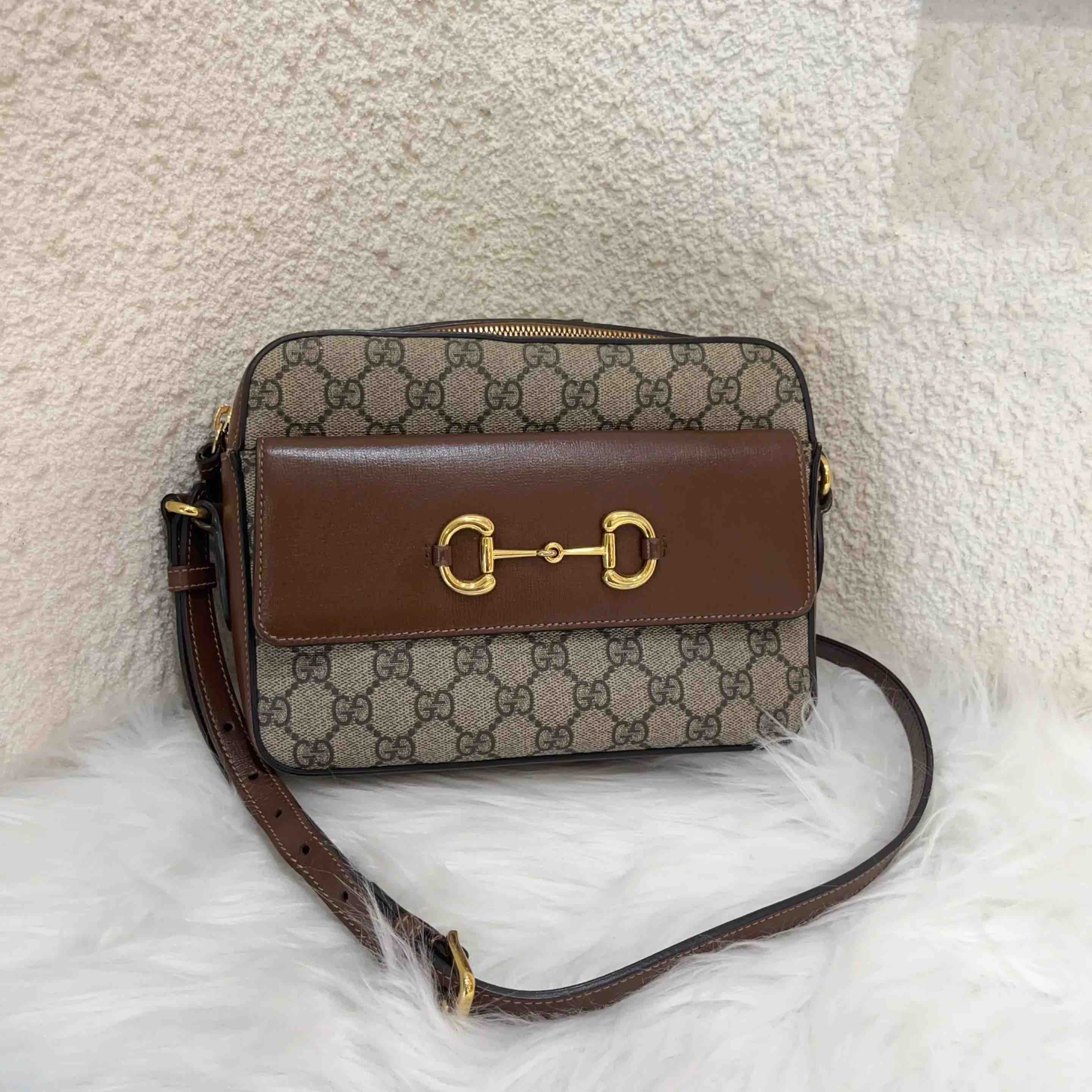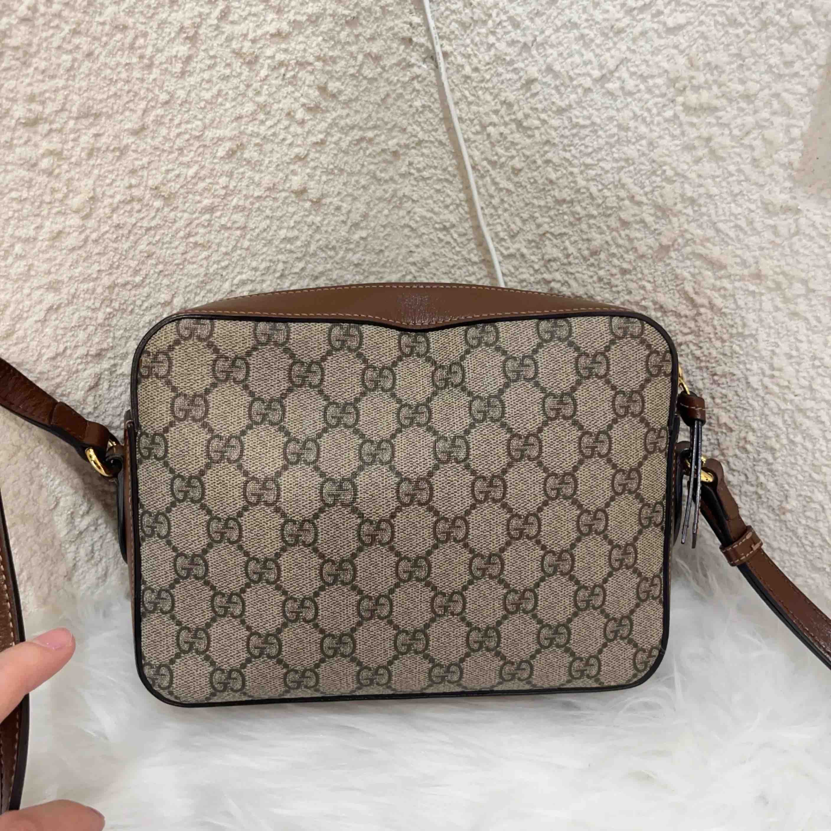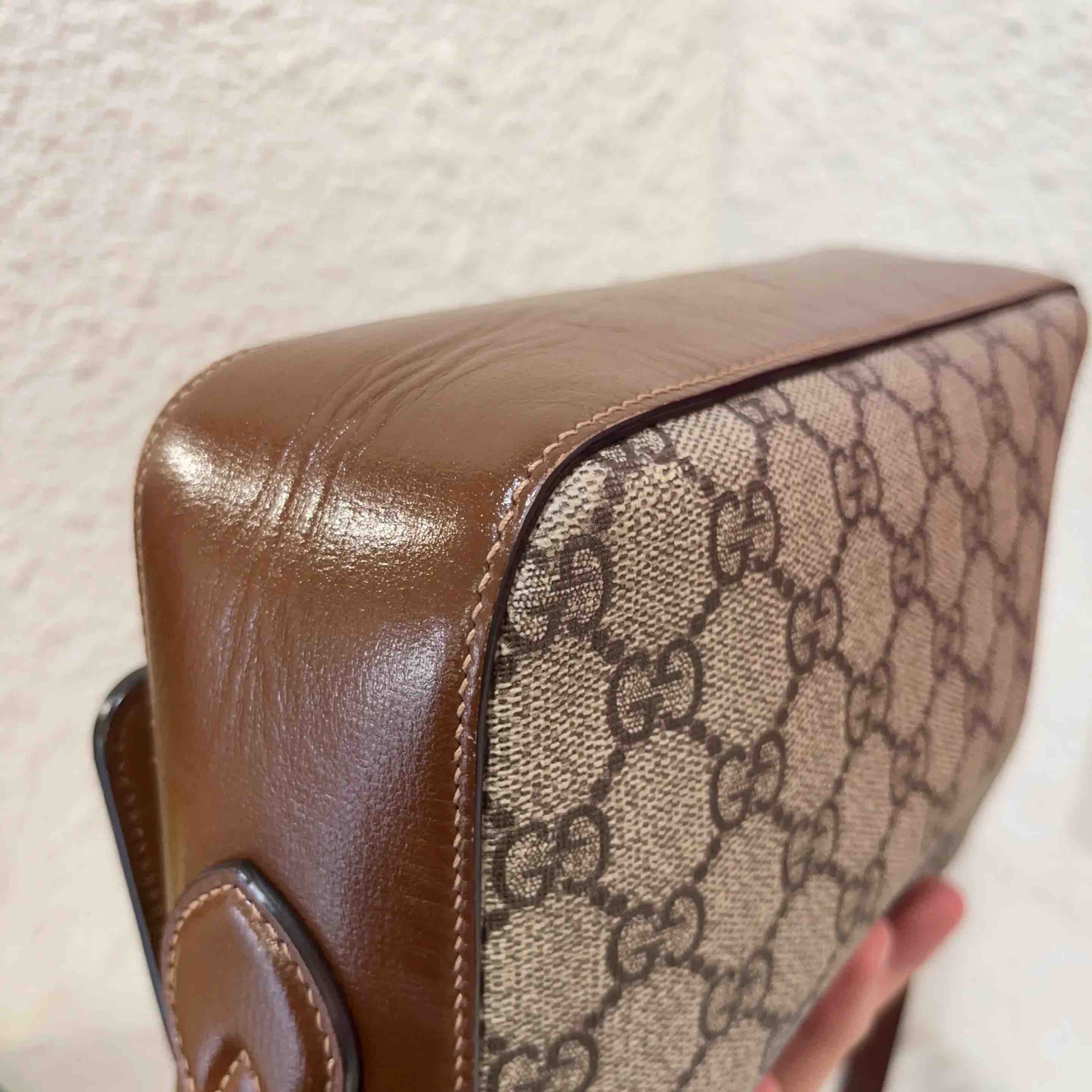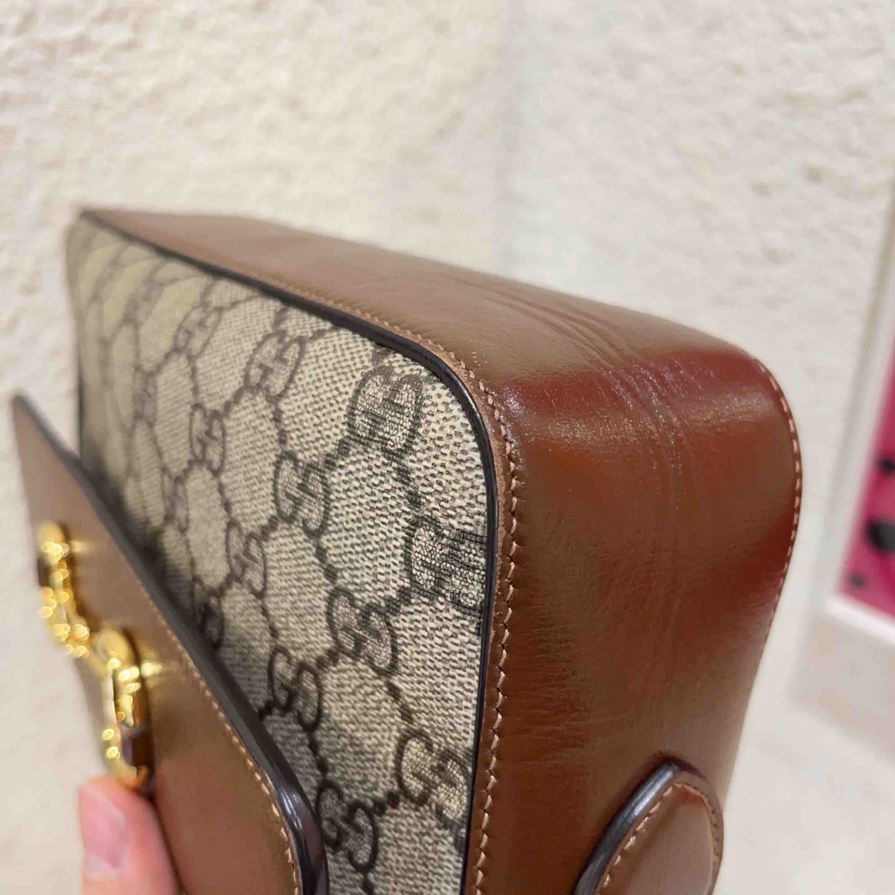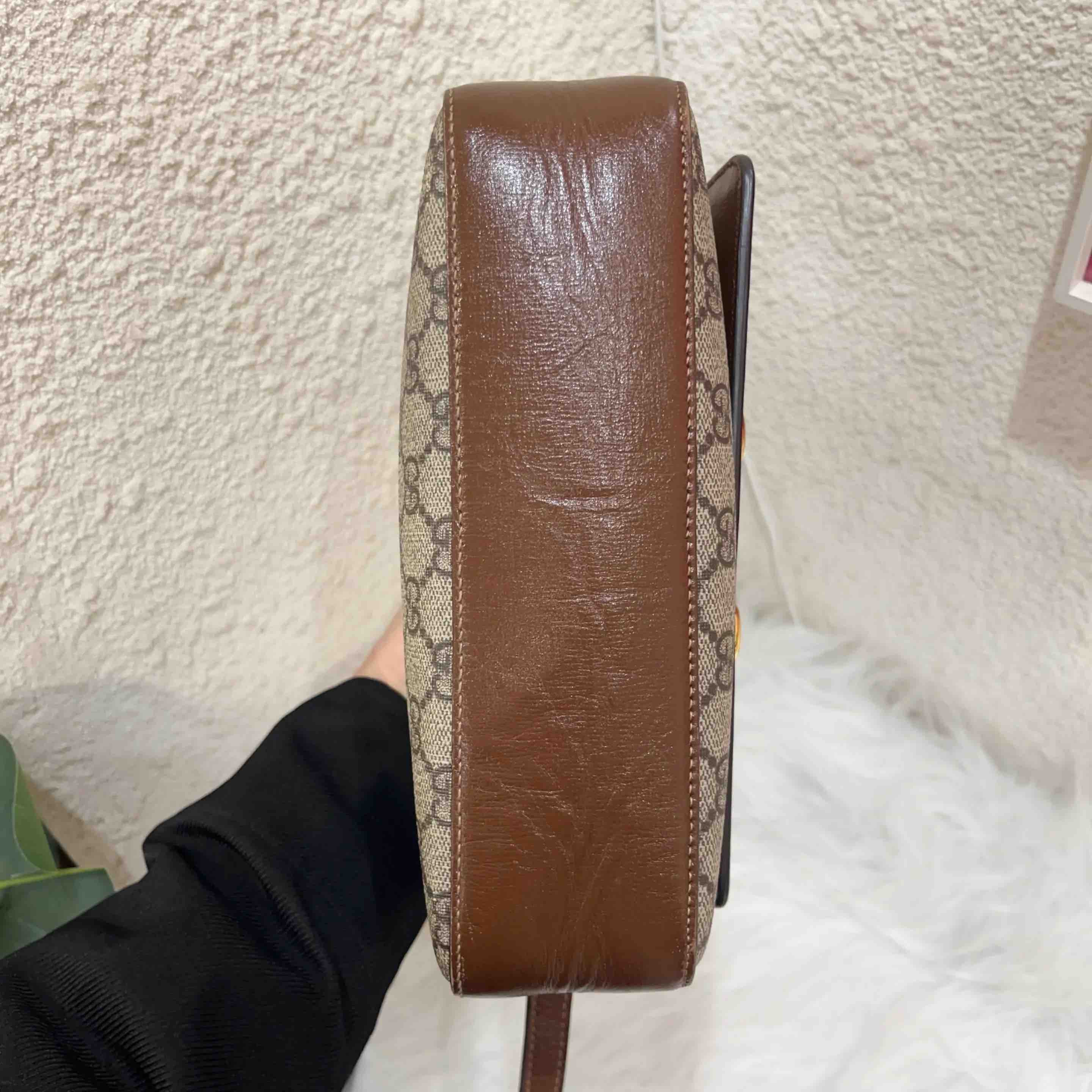 【商品详情】正品二手 GUCCI 1955 马衔扣 小号 老花拼皮 相机包🍧95新 22×17 配件:说明书 防尘袋。配皮正常使用感。精致小巧 复古英伦风