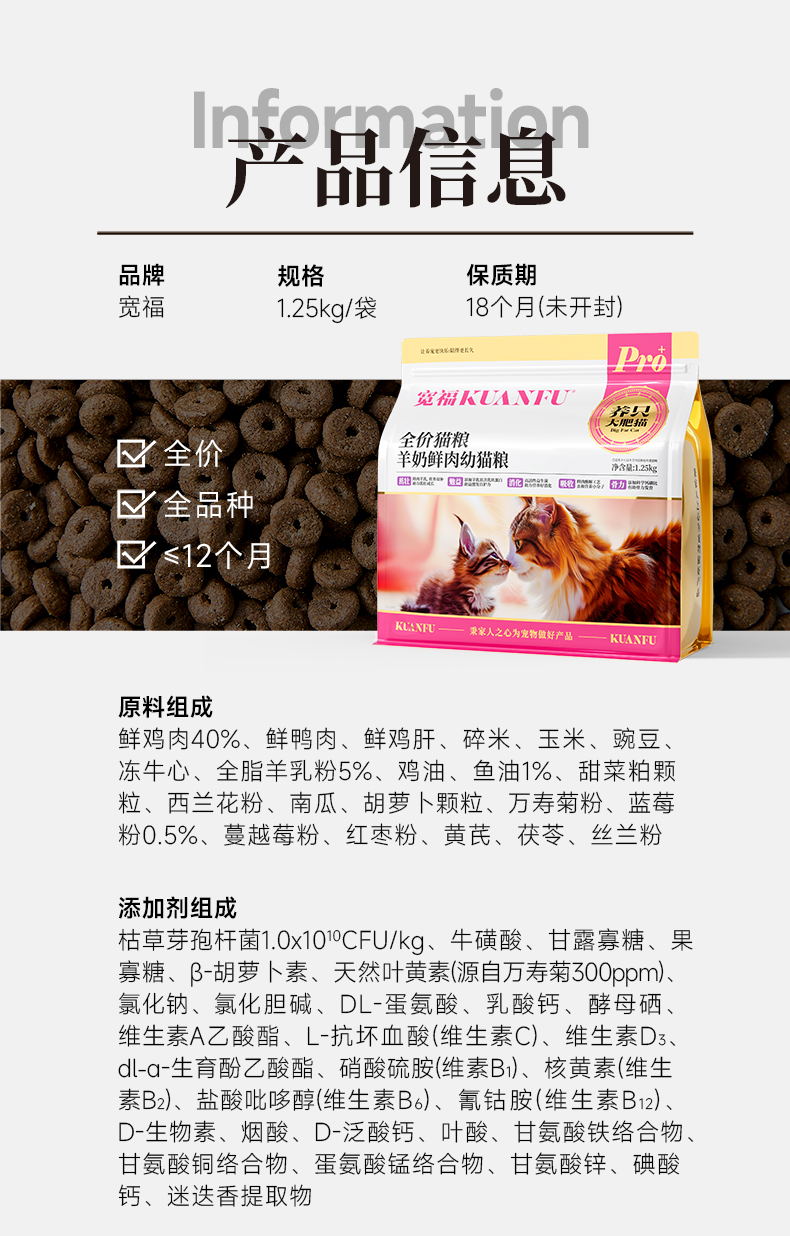 【羊奶鲜肉幼猫粮】宽福 添加全脂羊奶粉和鱼油 鲜肉酶解更适合幼猫 益生菌和益生元呵护肠道 增强免疫力激发骨骼成长
