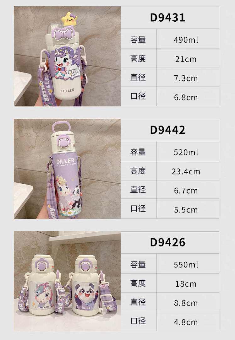 迪乐贝尔星愿马D9425-350ML直饮保温杯 紫色