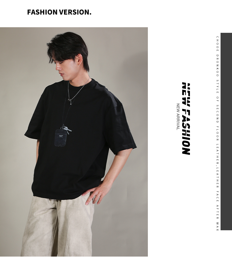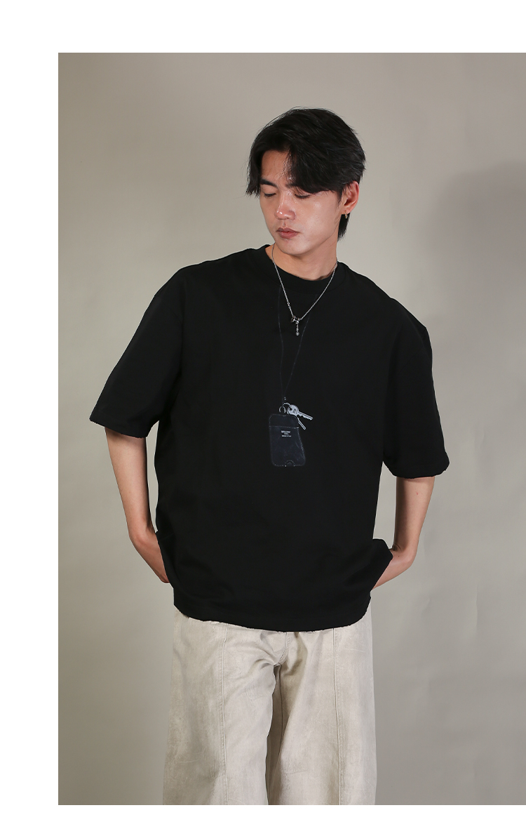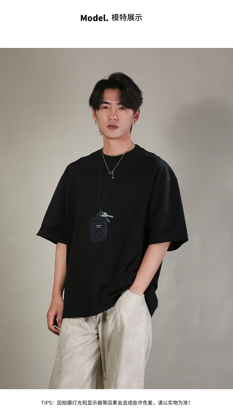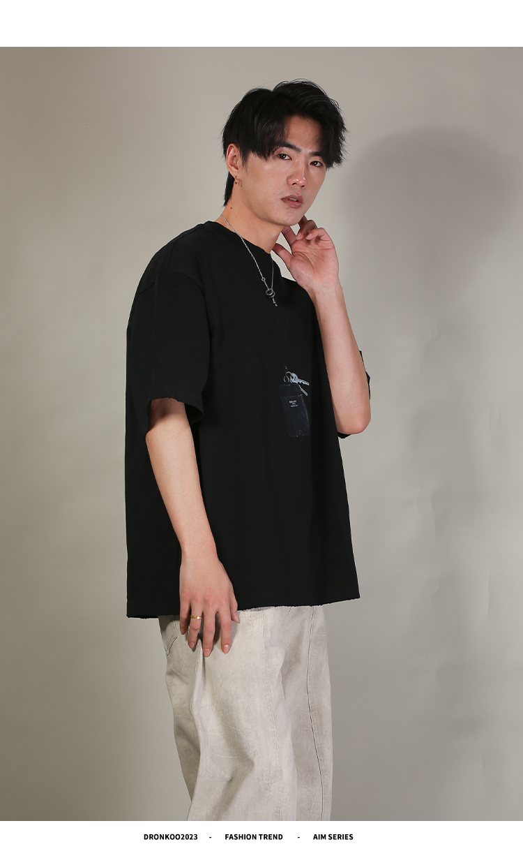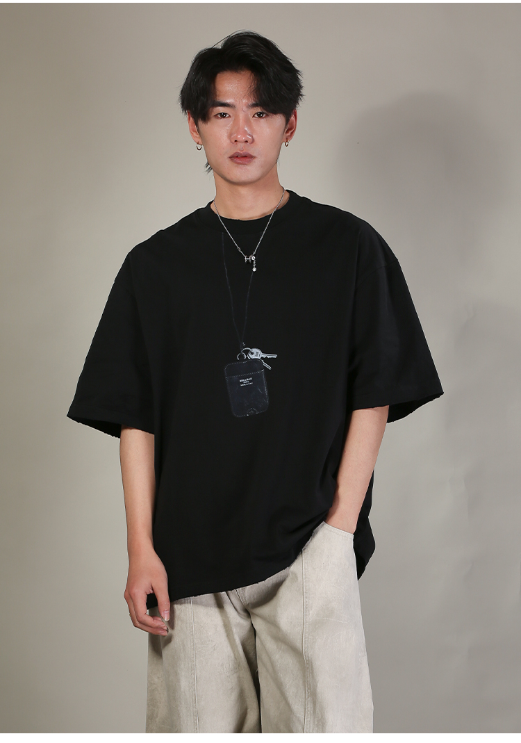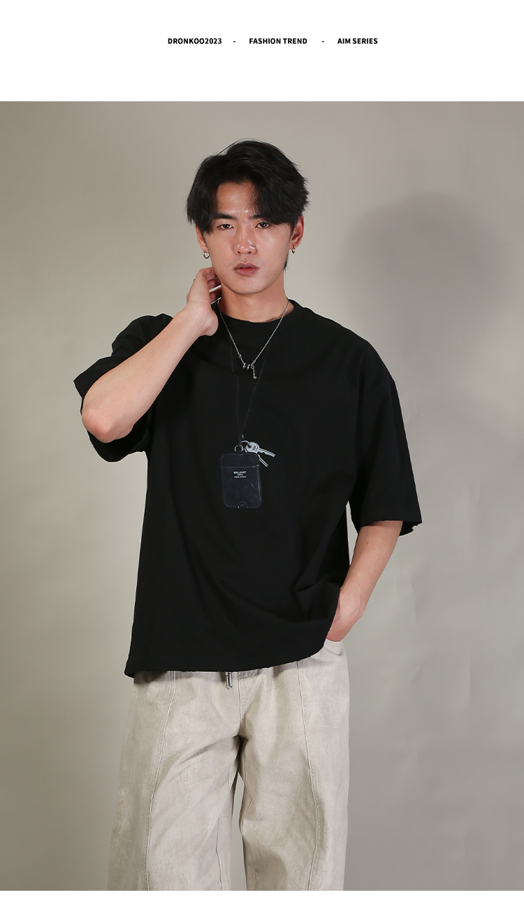DRONKOO 2026 圆领前钥匙皮牌挂件印花阔短袖T恤