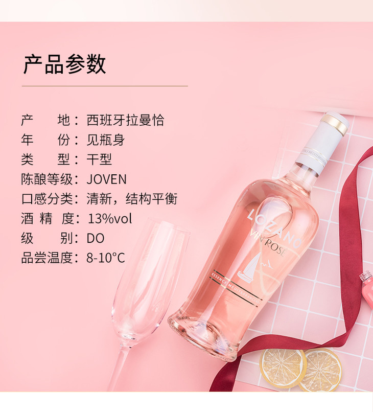 【多情对春风,醉眼万斗烟霞】洛萨诺庄桃红帆 百年酒庄 干红葡萄酒 西班牙葡萄酒 非桃花酒 原瓶进口DO级 红酒 单支装 采用高分子塞 镭射激光瓶