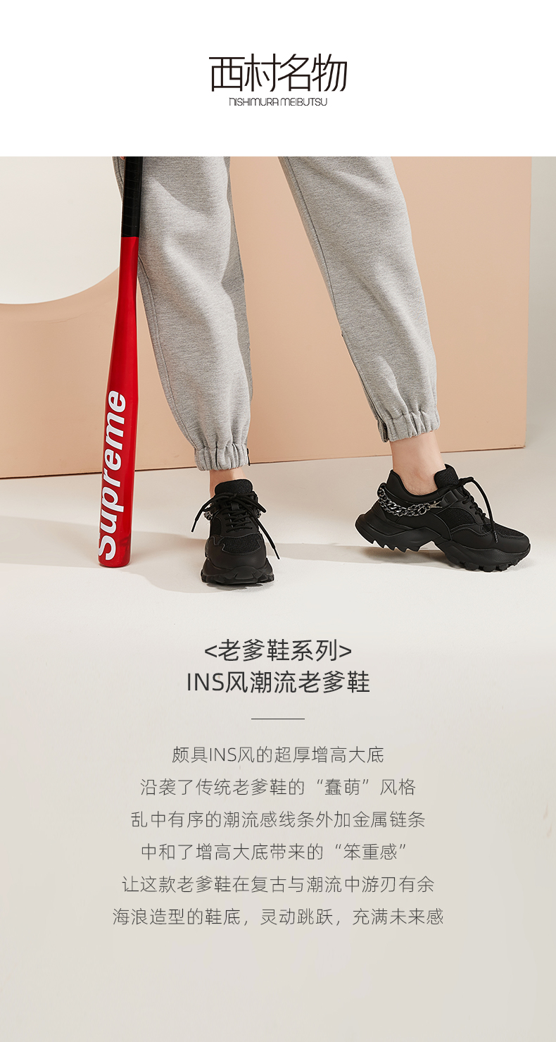 西村名物专柜老爹鞋女ins潮牛皮革网红休闲运动小白鞋T21AM15061