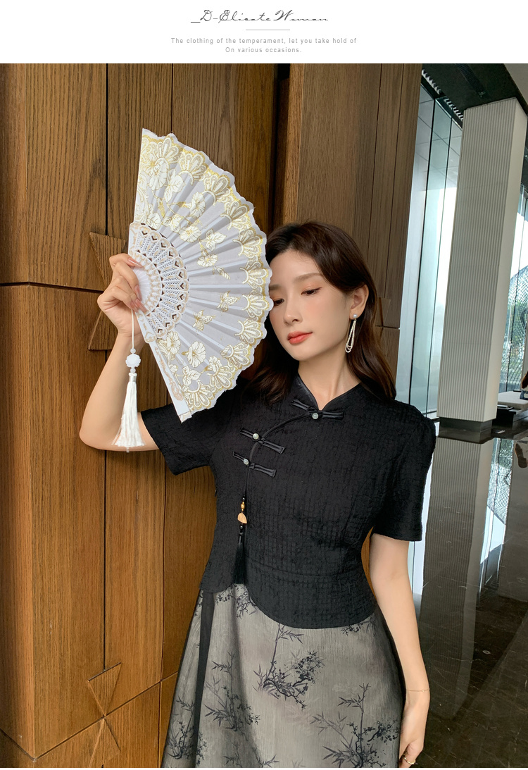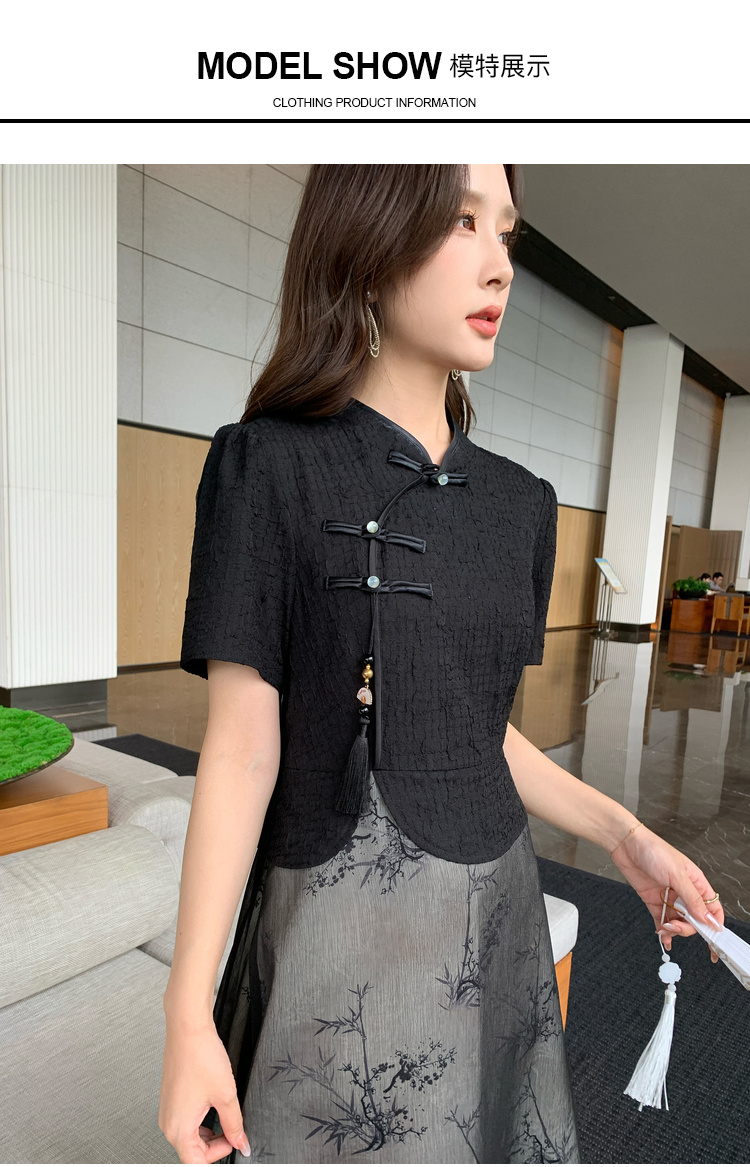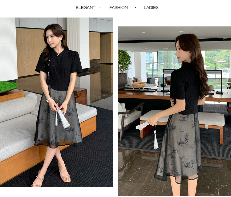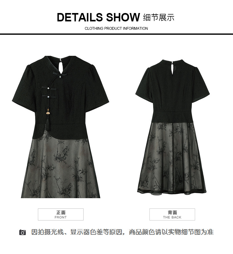 奢姿大码女装2025夏季时尚拼接中式旗袍连衣裙胖妹妹气质立领裙子9942826370【1】