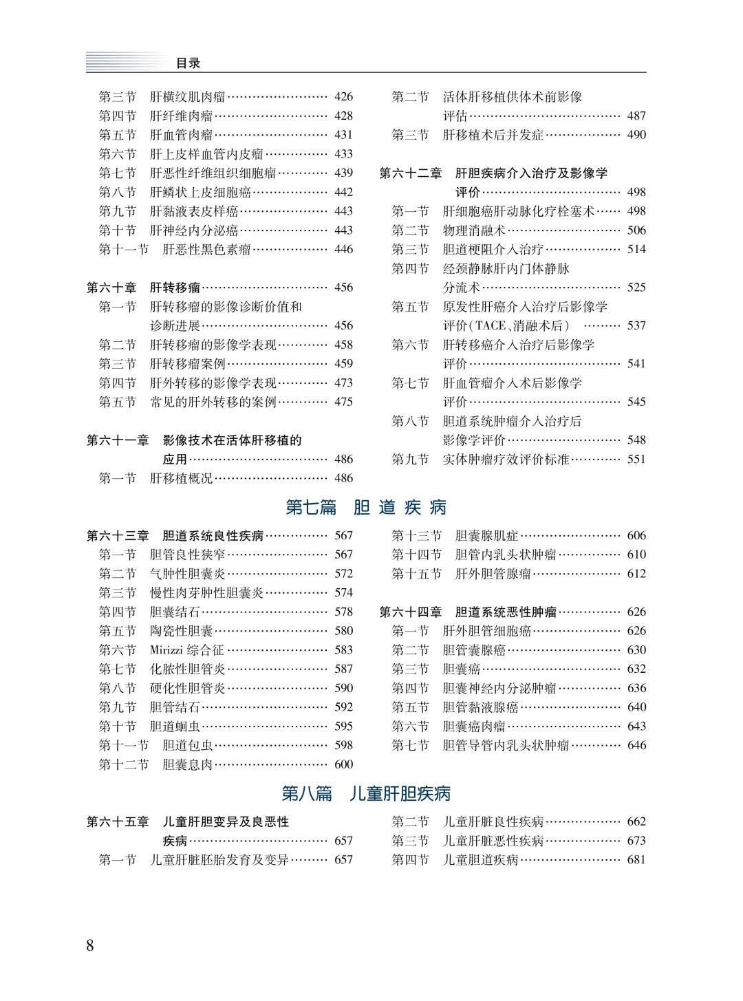 全书分为8篇,共65章。第一篇7章,重点阐述了肝胆疾病影像新技术,包括肝胆超声检查技术,肝胆CT、MRI、PET/CT、PET/MRI成像技术,肝胆内镜检查技术及肝胆介入技术等内容。第二篇到第六篇共55章,主要介绍了肝脏感染性疾病、病毒性肝炎及肝硬化的影像学诊断,艾滋病相关肝脏疾病、肝脏创伤与损害、肝代谢性、肝血管性及肝脏囊性病变的诊断,重点介绍了肝脏良恶性肿瘤(含肝转移瘤)的诊断与鉴别诊断,以及影像技术在活体肝移植的应用等内容。第七篇共2章,重点介绍了胆道系统良性、恶性疾病(肿瘤)。第八篇1章,对儿童肝胆疾病,包括儿童肝脏发育异常及变异、儿童肝脏良性、恶性疾病的诊断等,作了全面叙述。