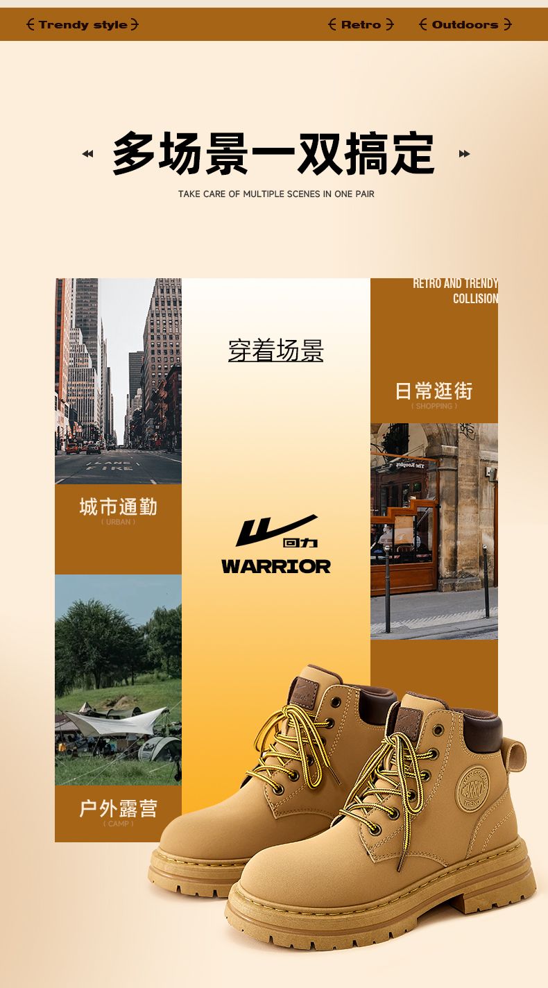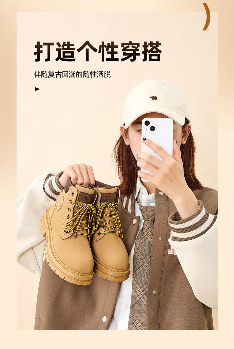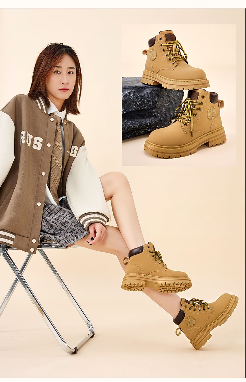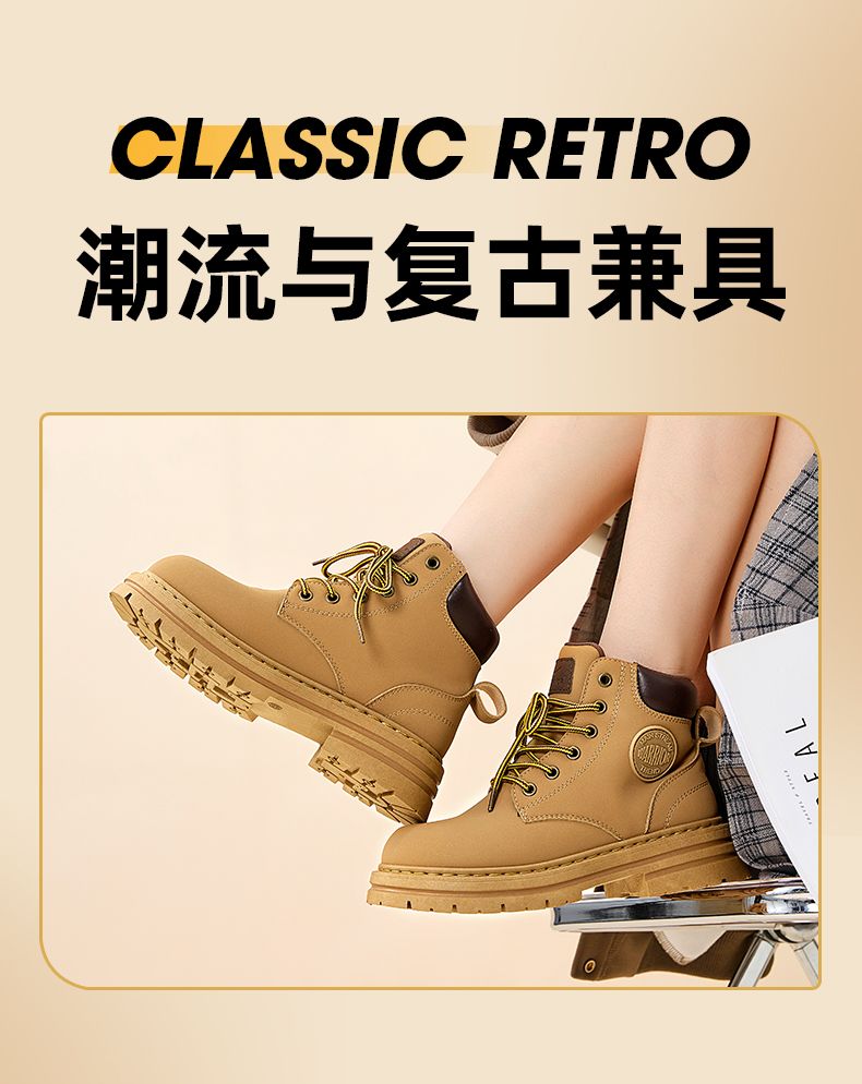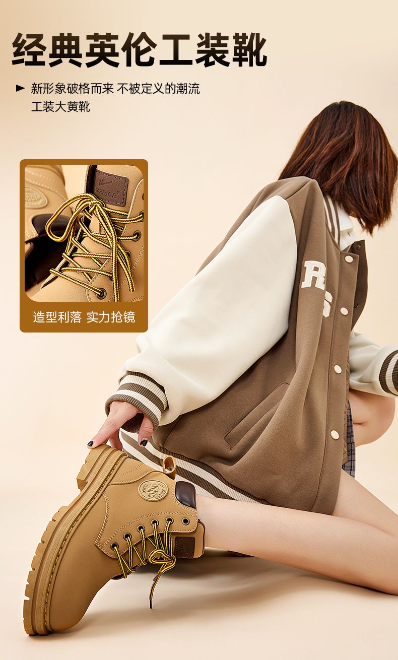 回力马丁靴女款英伦风秋季新款潮流时尚厚底百搭高帮短靴子大黄靴