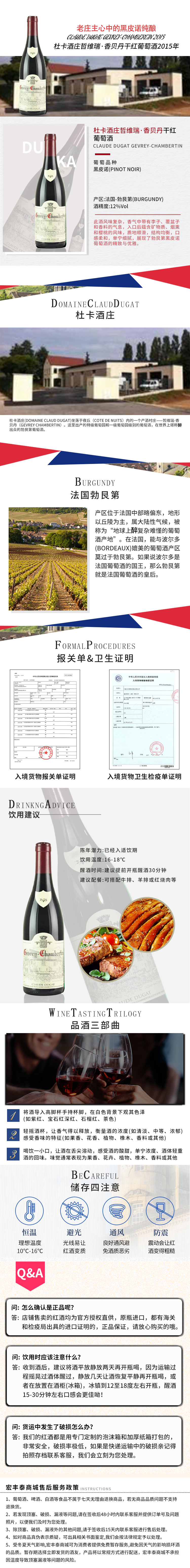 法国-杜卡酒庄哲维瑞·香贝丹干红葡萄酒2015年 Claude Dugat Gevrey-Chambertin