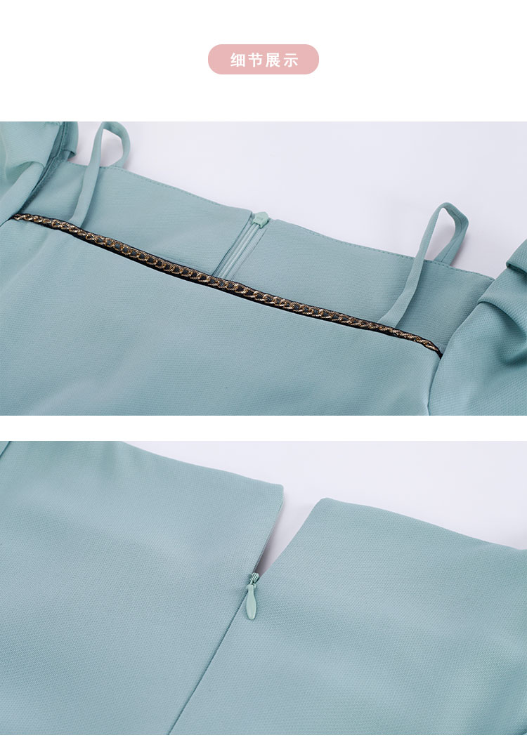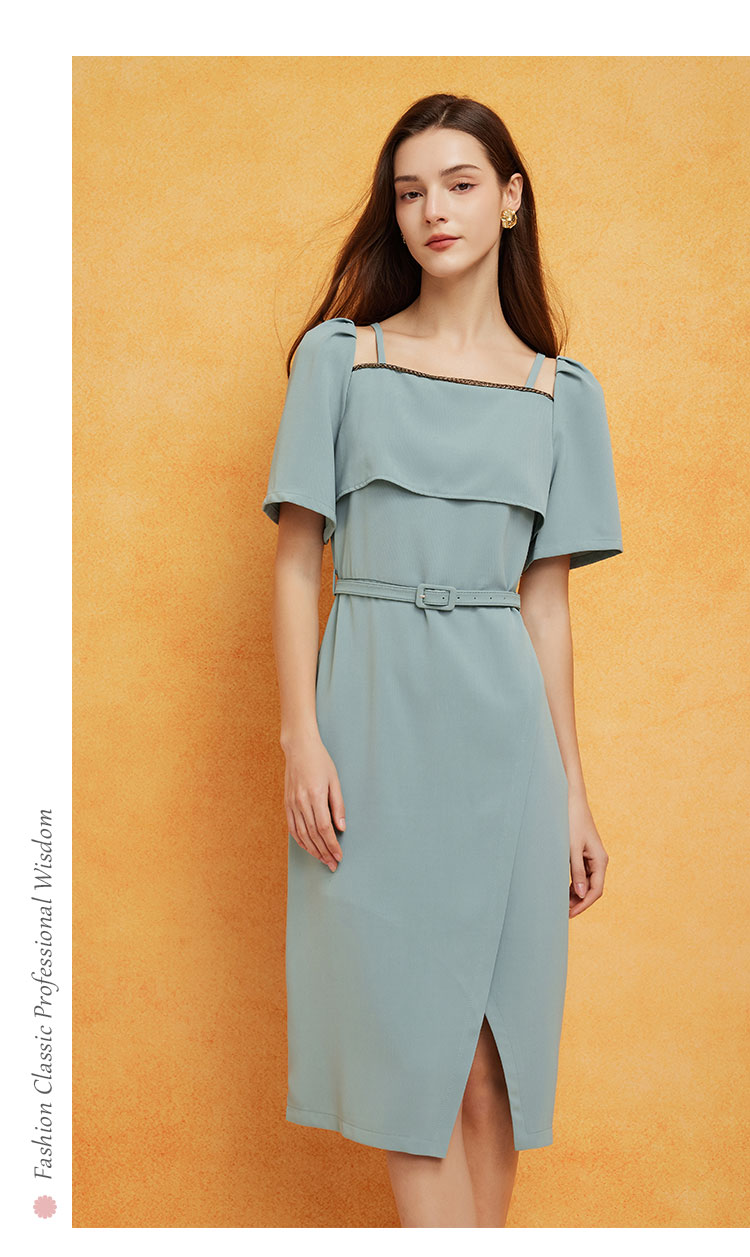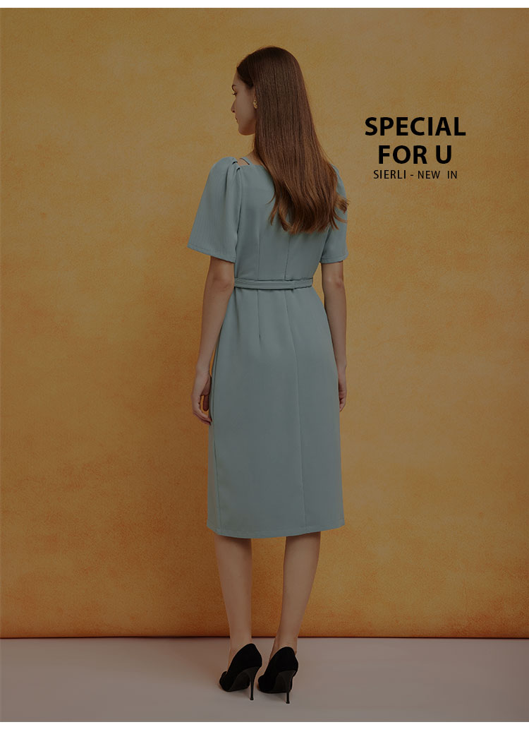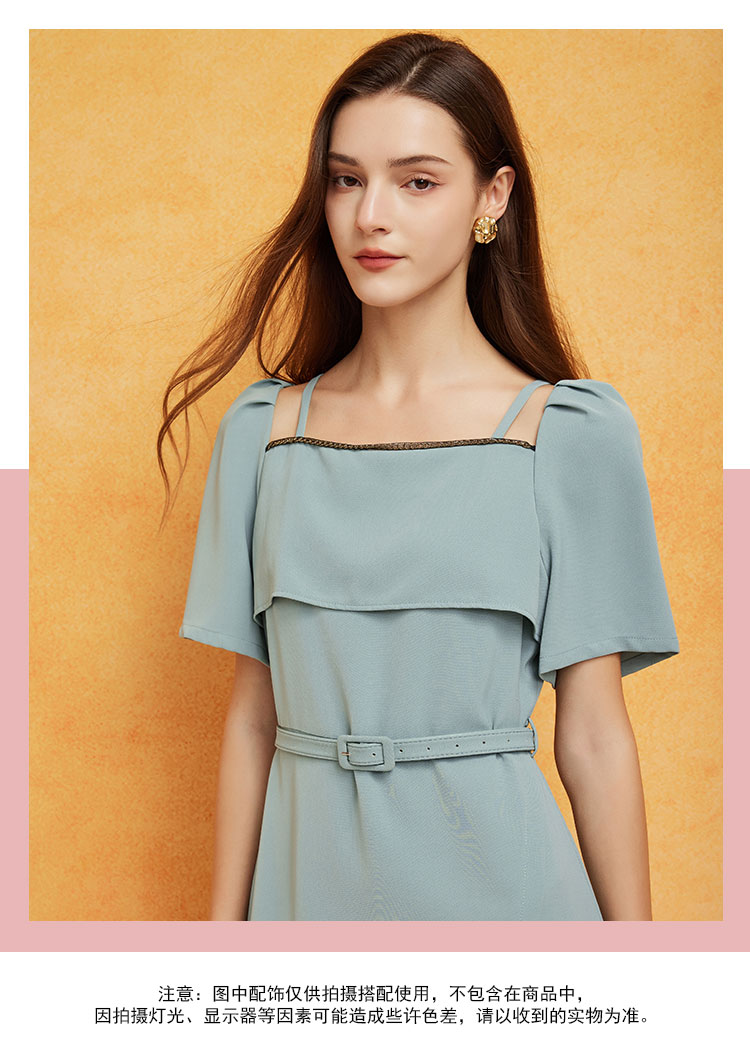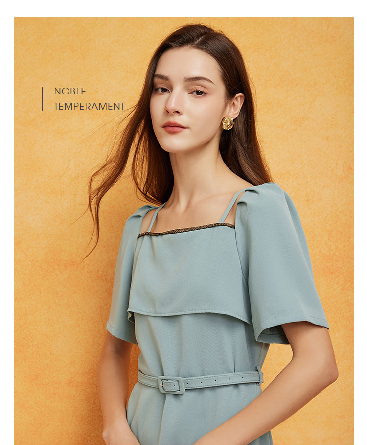 PF8E3斯尔丽2024夏季荷叶不规则方领泡泡袖垂坠滑爽显瘦显高连衣裙