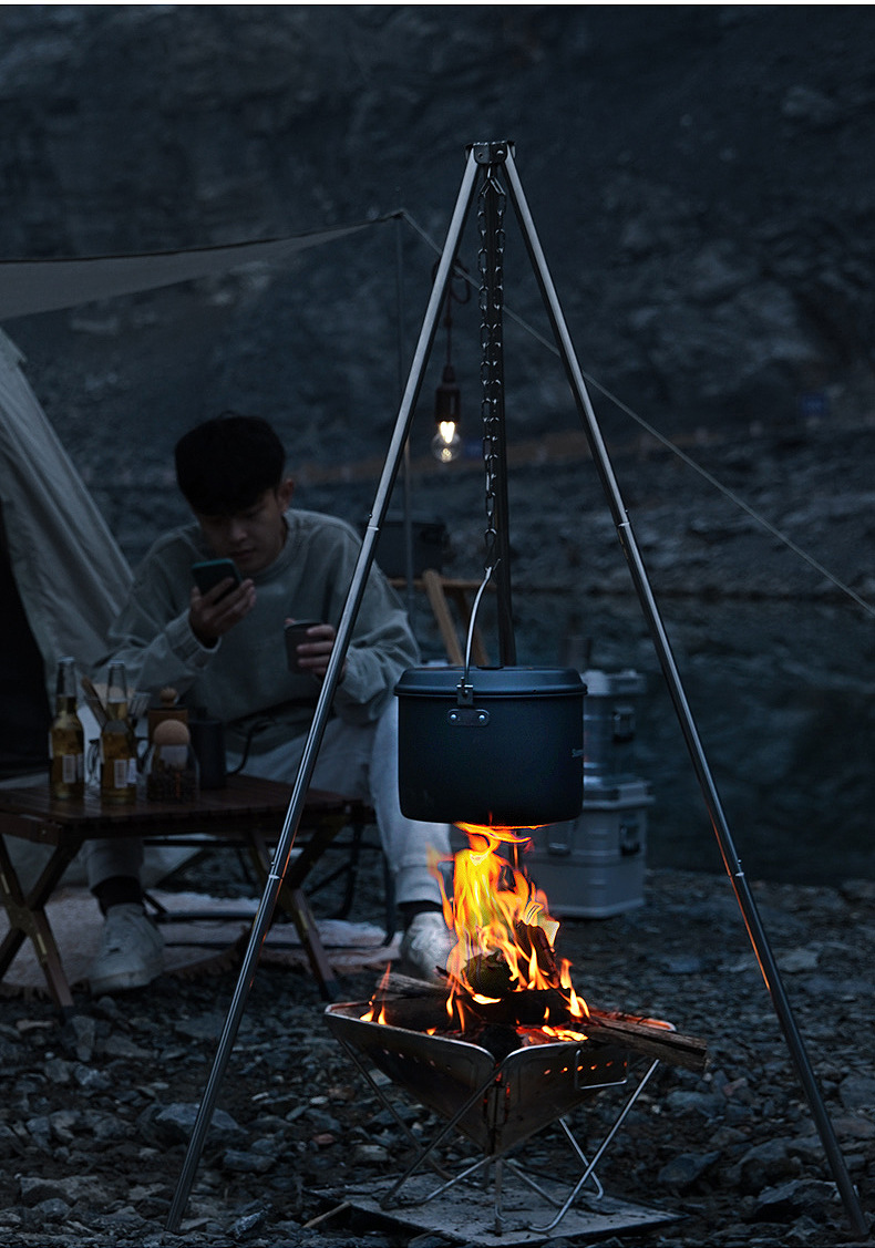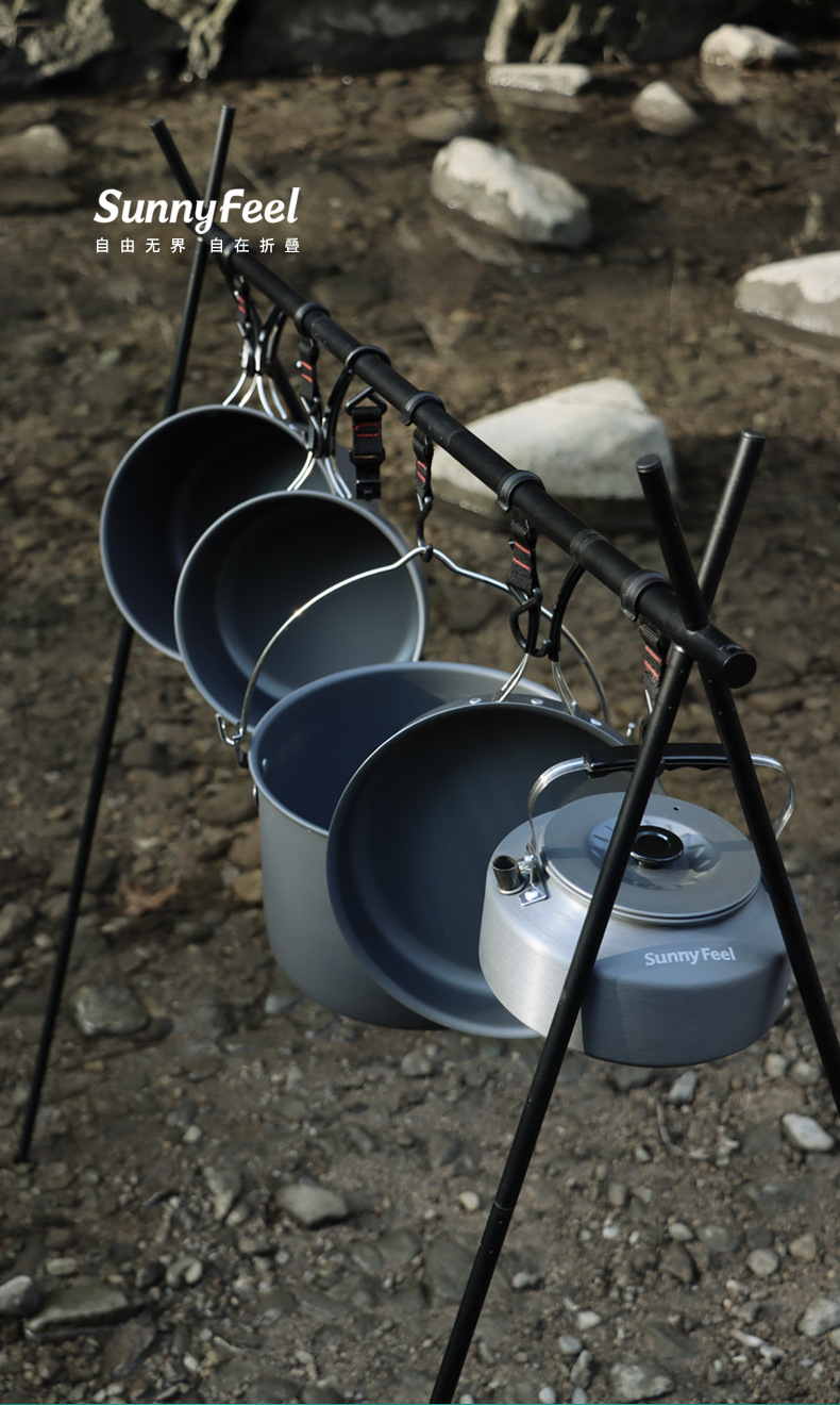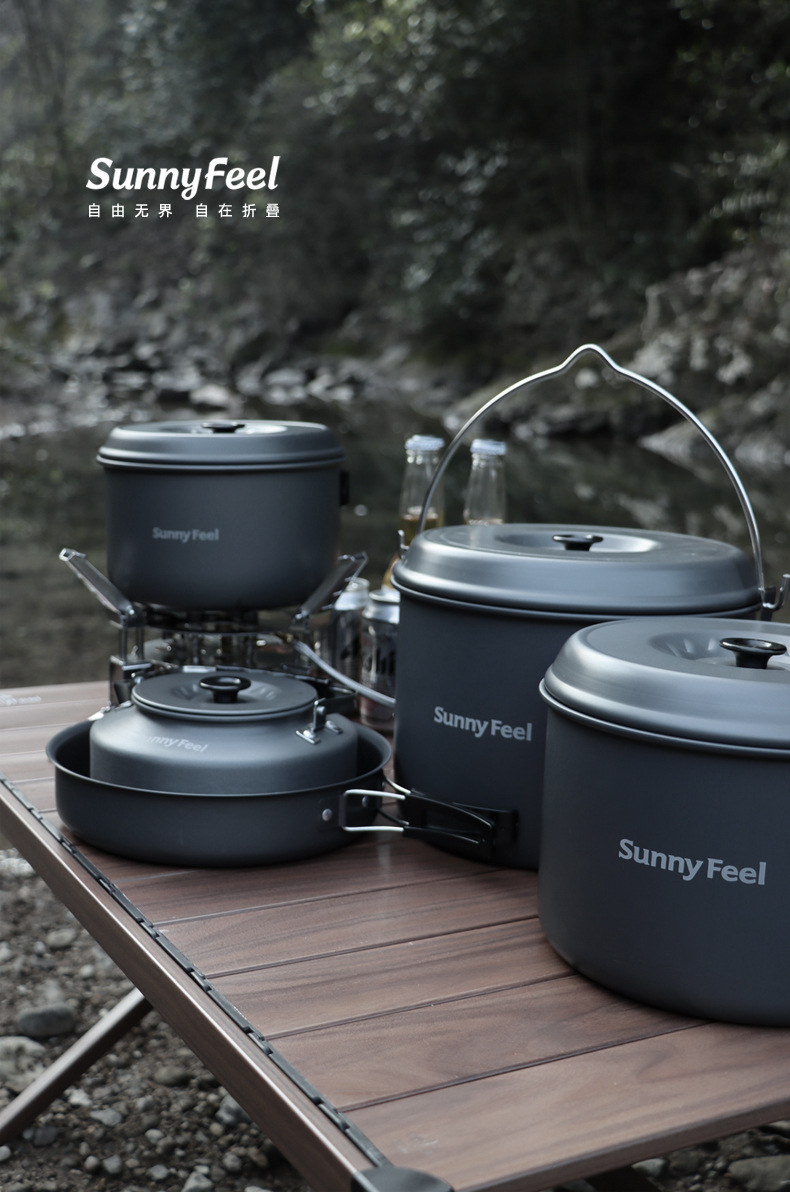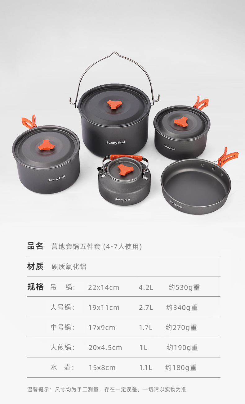 SunnyFeel户外露营锅具营地5件套装锅盆野餐吊锅水壶煎锅野营炊具