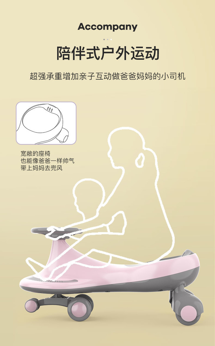 (K-1)儿童妞妞车溜溜滑行1-3-6岁男女宝宝扭扭车万向轮防侧翻大人可坐