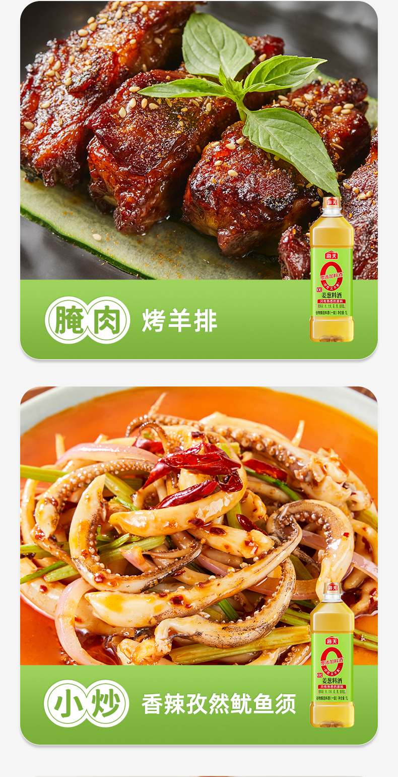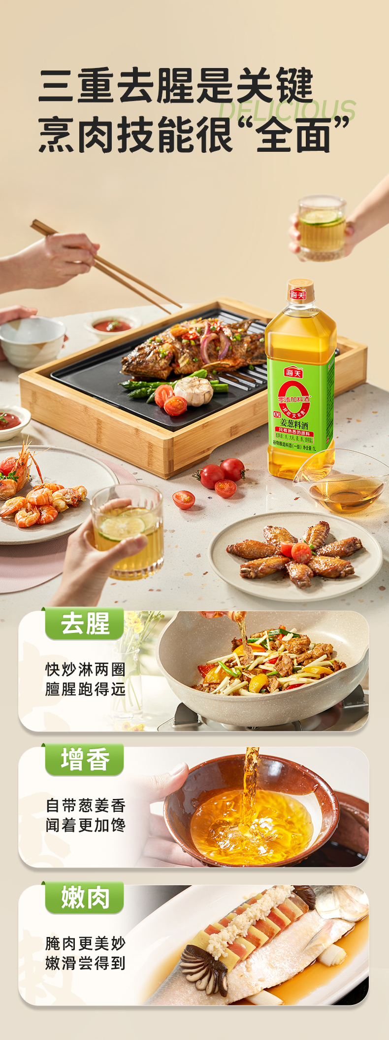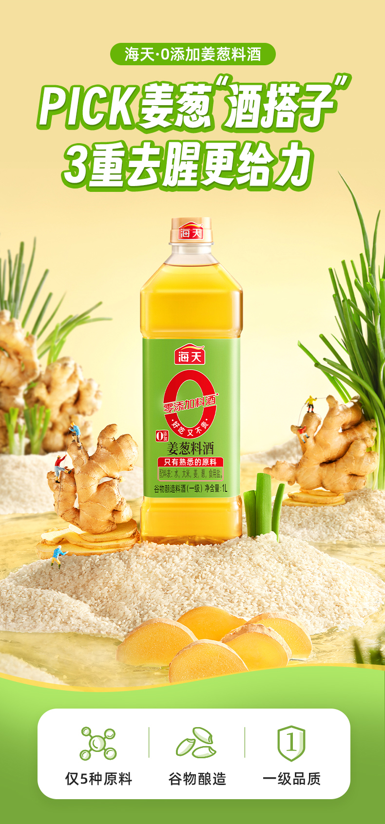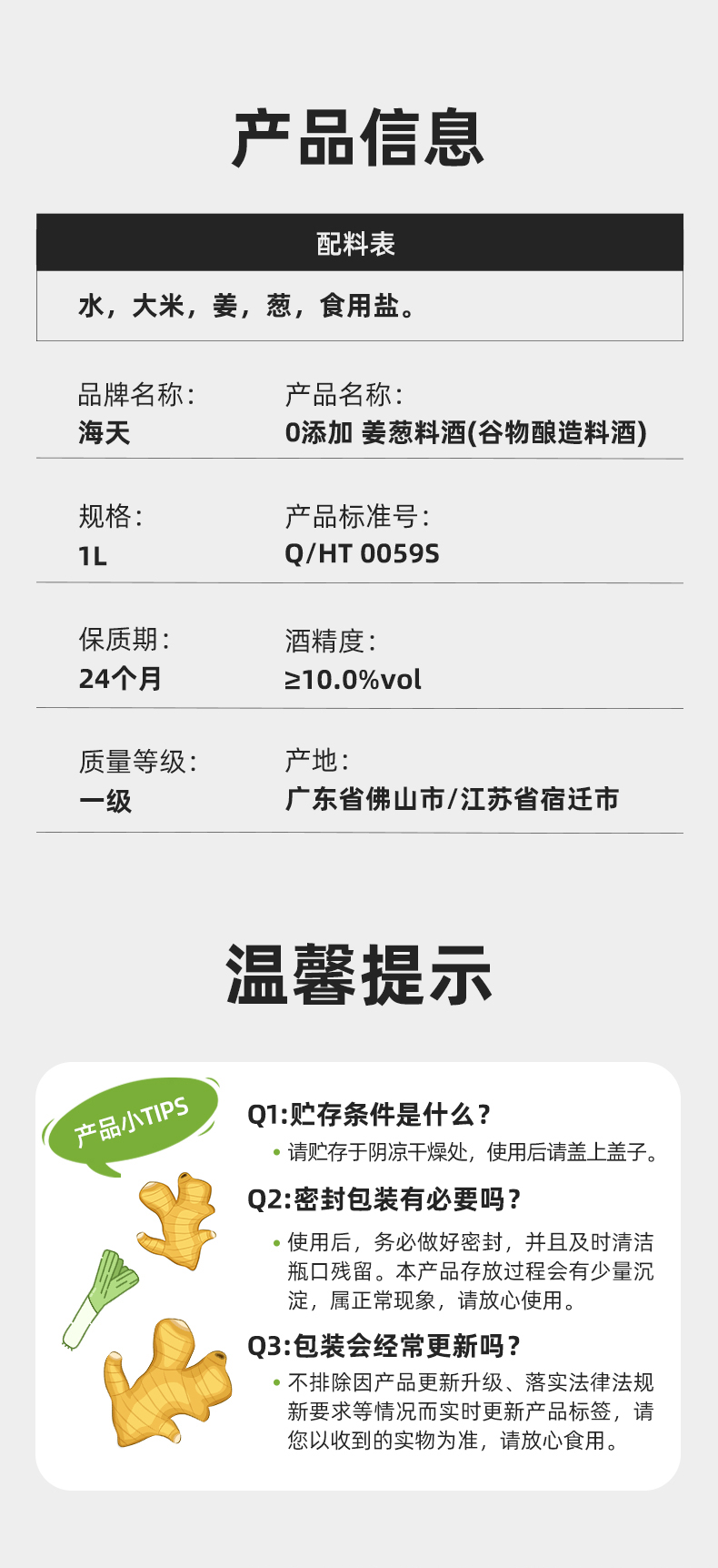 【包邮】海天0添加姜葱料酒1L三重去腥谷物酿造