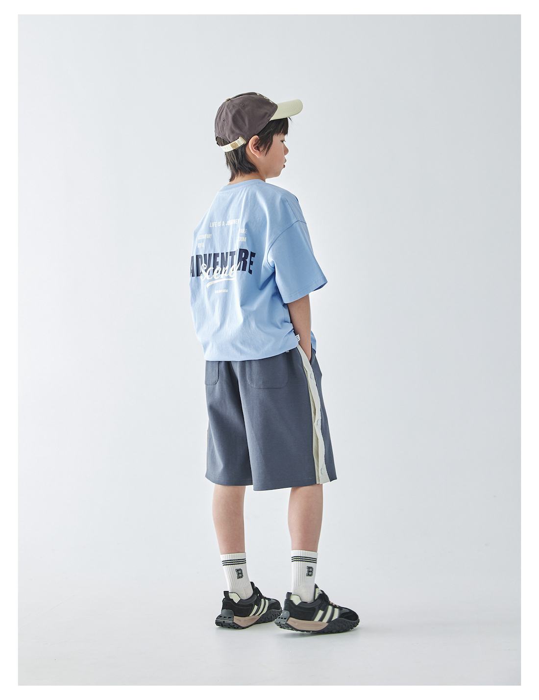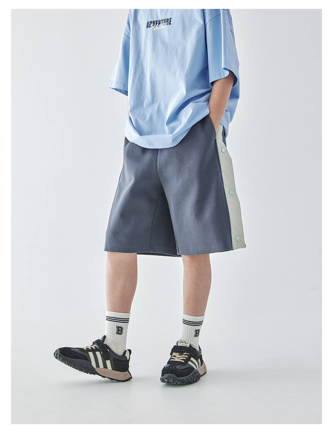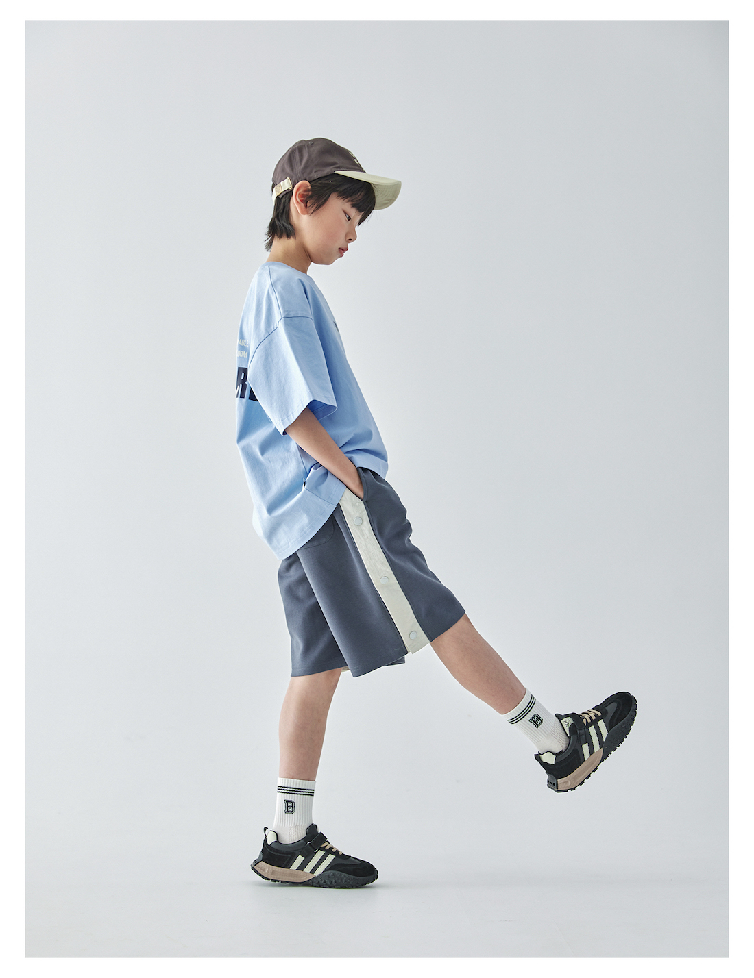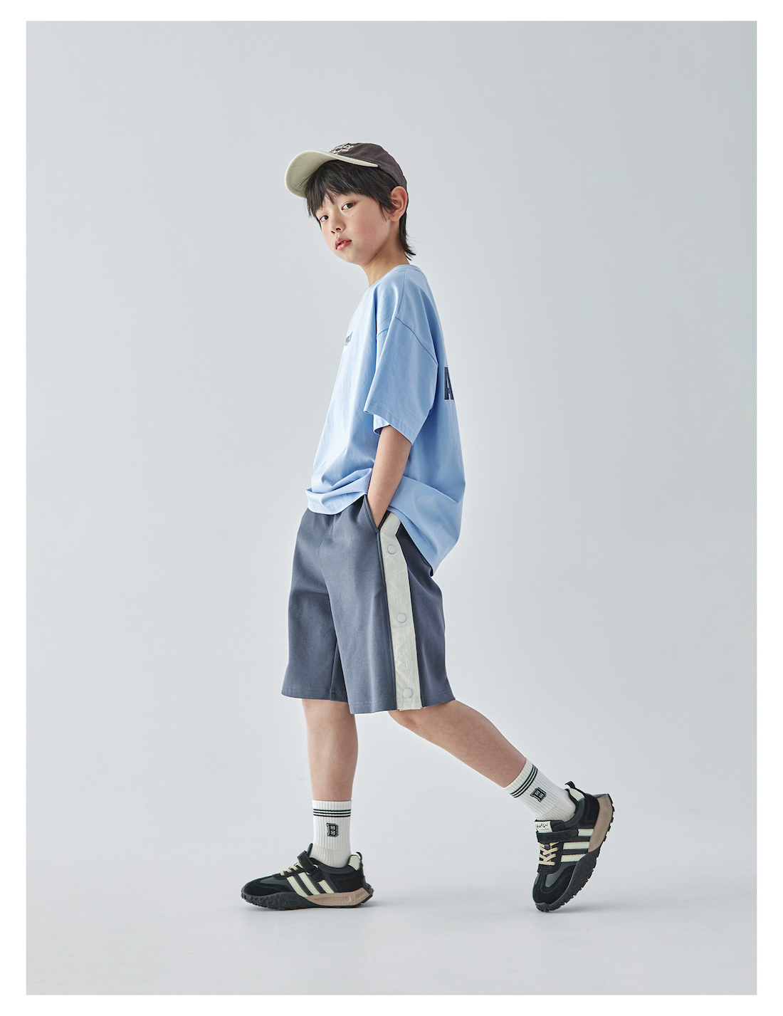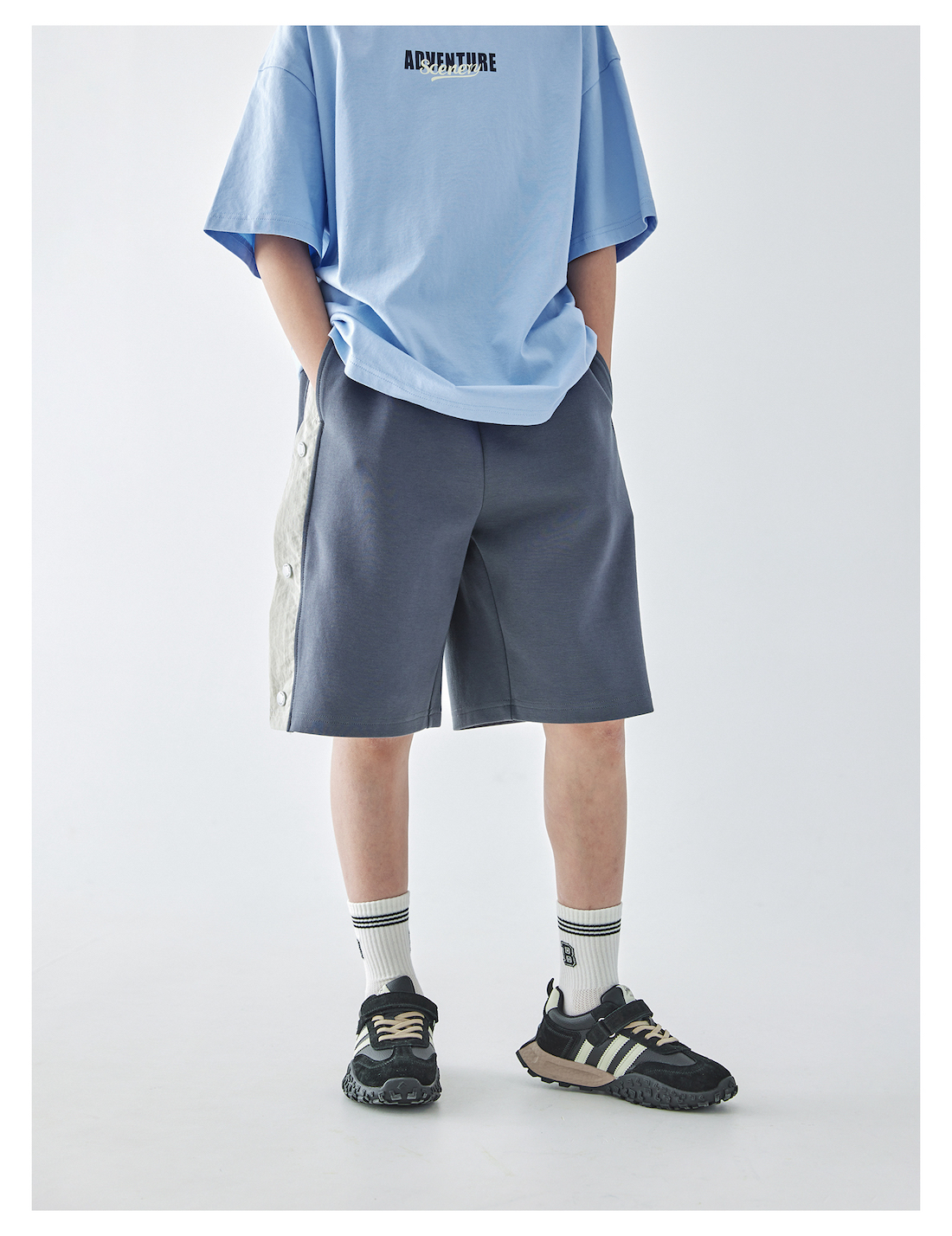【代发】男童撞色拼接五分裤 蓝汽水夏季亲子款慵懒风平纹肌理针织短裤深灰色