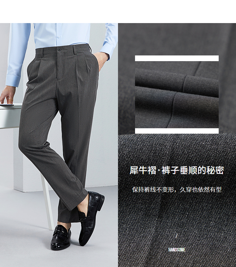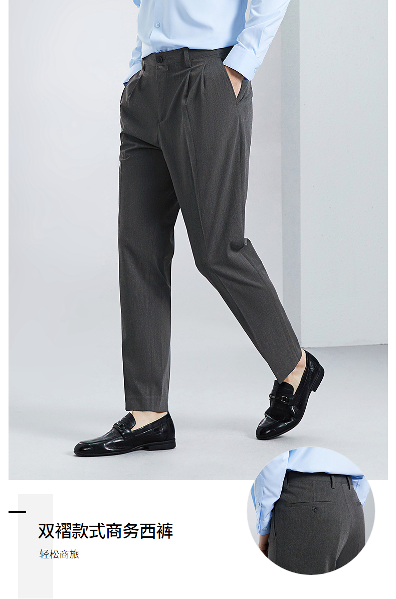 【犀牛褶】柒牌男装双褶西裤男春夏新款商务通勤上班修身直筒长裤 126H70850