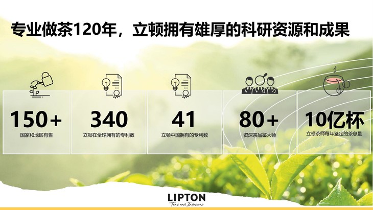 立顿创立于1980年,1992年进入中国 目前为止,立顿已经有120年的历史了 🌍 150+国家和地区在售,全球消费者的共同选择 🔬 340+全球专利技术,科研实力遥遥领先 🇨🇳 41项中国专利,深耕本土市场需求 👃 80+资深茶品鉴大师,每一杯都经得起挑剔 ☕ 10亿杯——这是立顿茶师每年品鉴的茶总量,只为确保你手中的那一杯,完美无瑕 ✅ 100%好选材,每一款都有自己鲜明的特点 立顿——品质可信赖,好茶看得见。