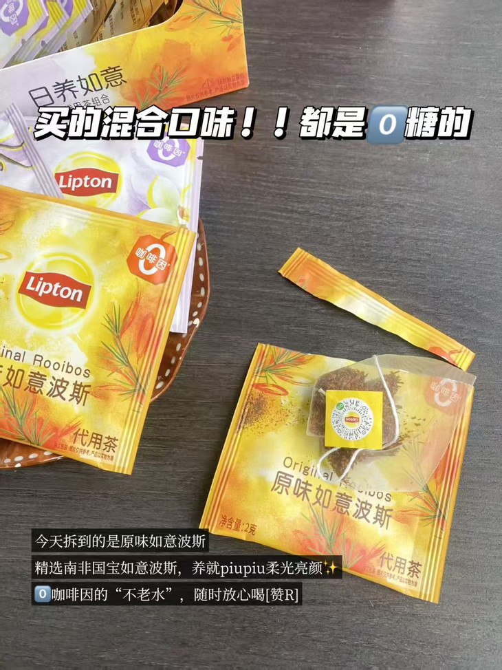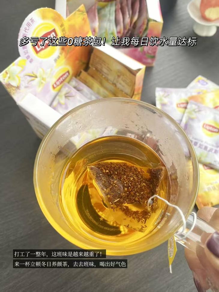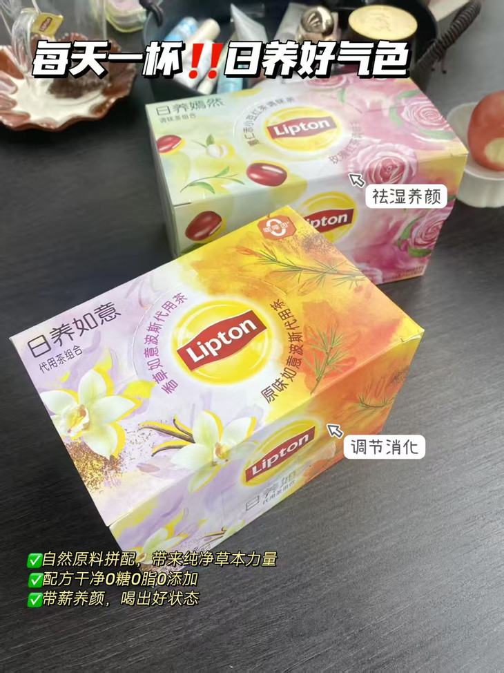 家人们谁懂啊!立顿这俩小宝贝,我直接喝上瘾了! 以前熬夜加班,第二天脸黄得像个土豆🥔 自从挖到立顿这个日养如意代用茶——