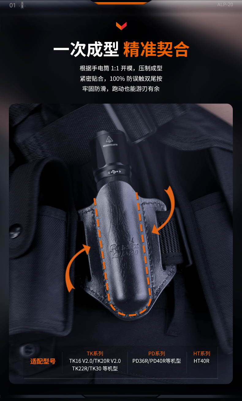 Fenix菲尼克斯ALP-20手电勤务皮套开口快拔套防滑耐磨跑跳不晃