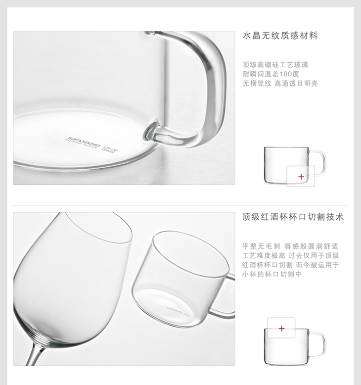 尚明耐热加厚玻璃小茶杯功夫品茗杯 带把透明玻璃水杯子家用150ml