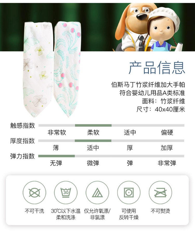 伯斯马丁【A类标准】竹纤维加大手帕4条装