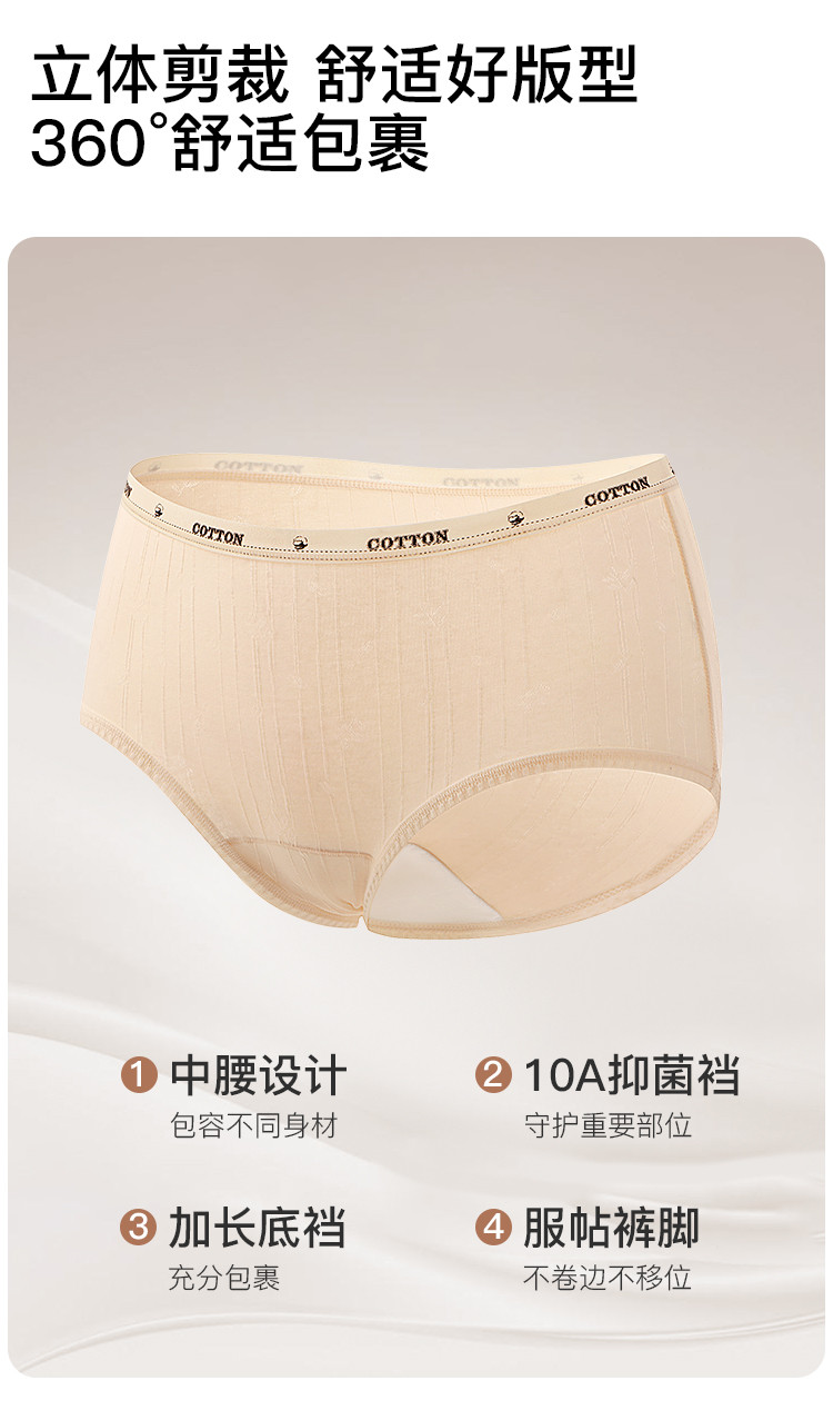 花影私藏 4条装(VIP)【10A抑菌】4条装100%纯棉抑菌裆女士内裤