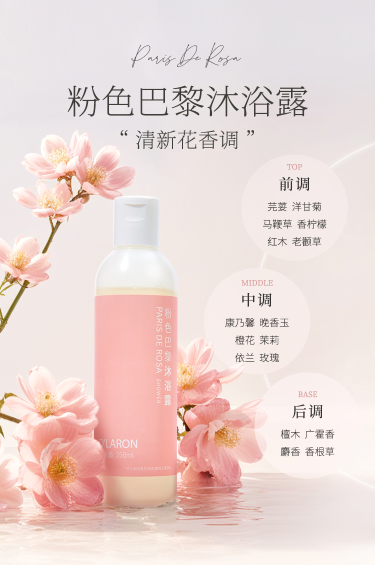 迪拉瑞粉色巴黎香氛沐浴露 保湿滋润清洁沐浴乳持久留香