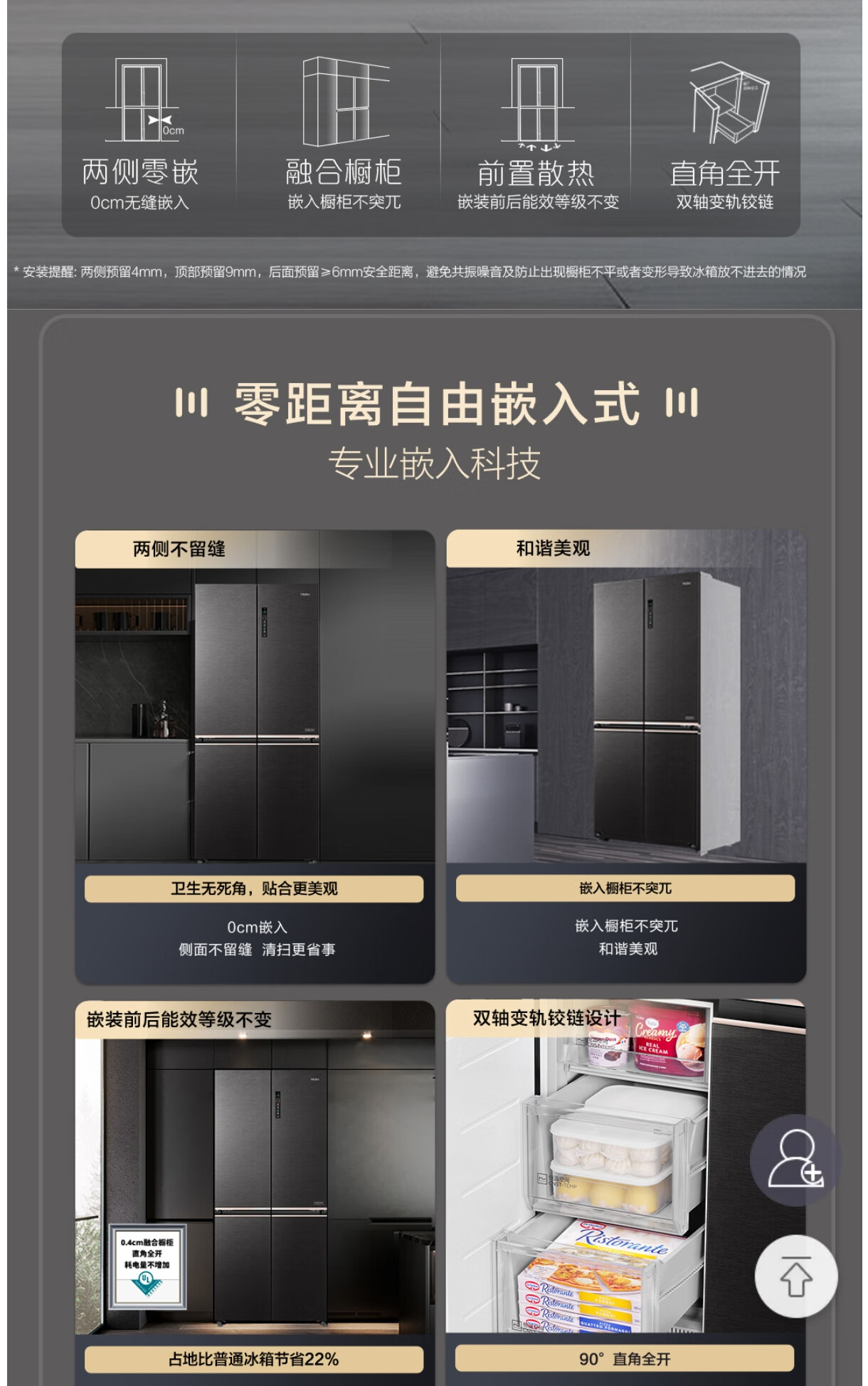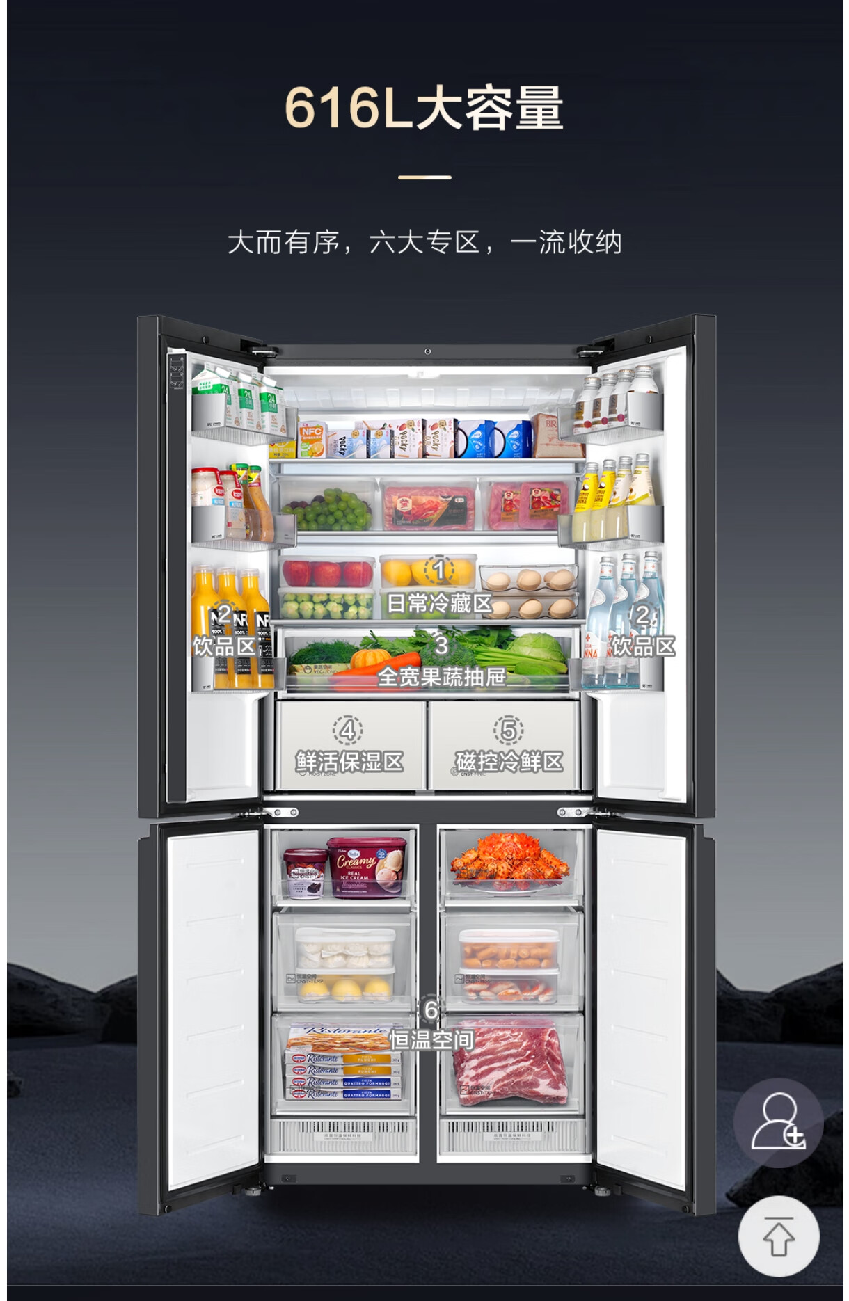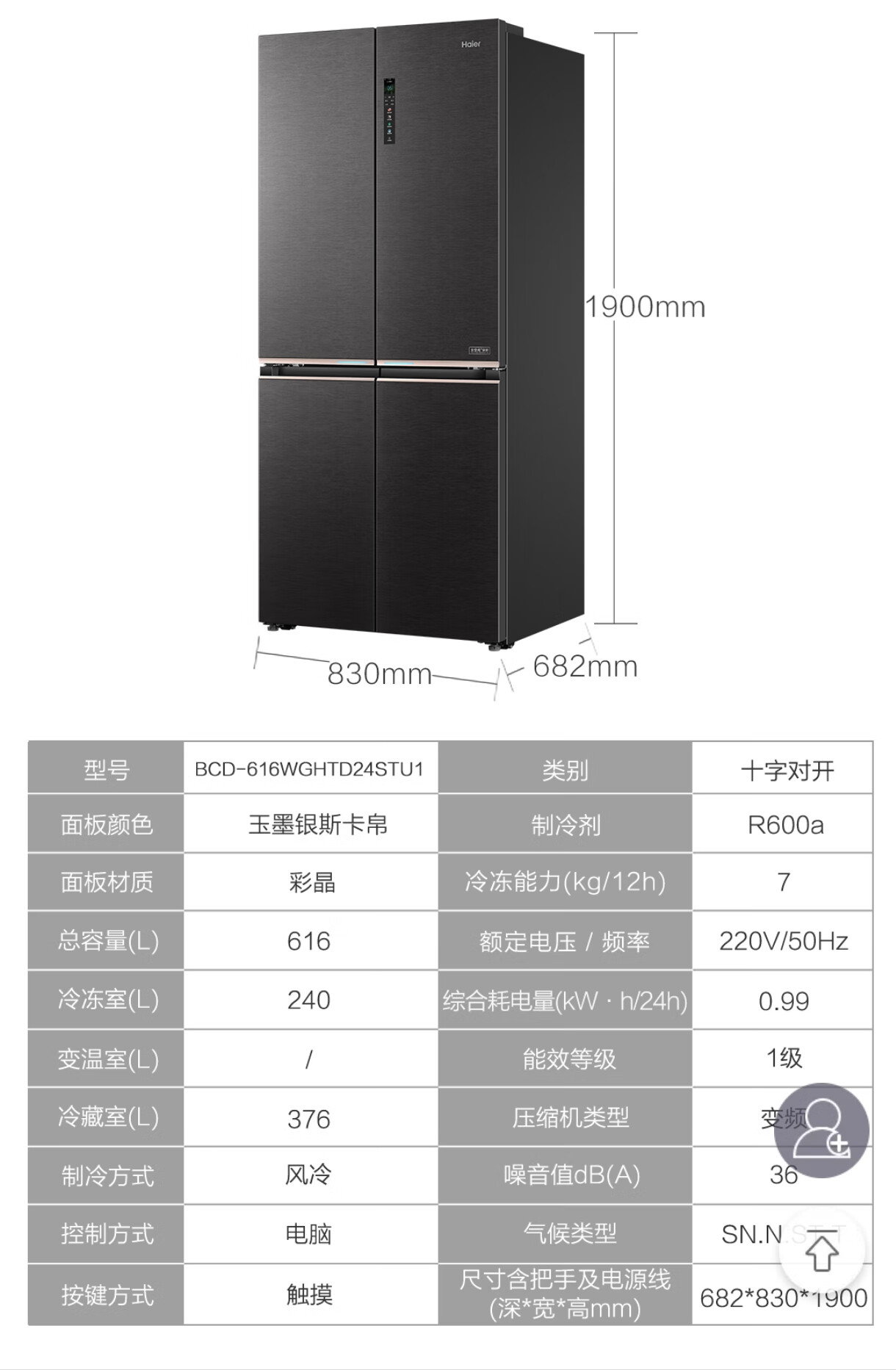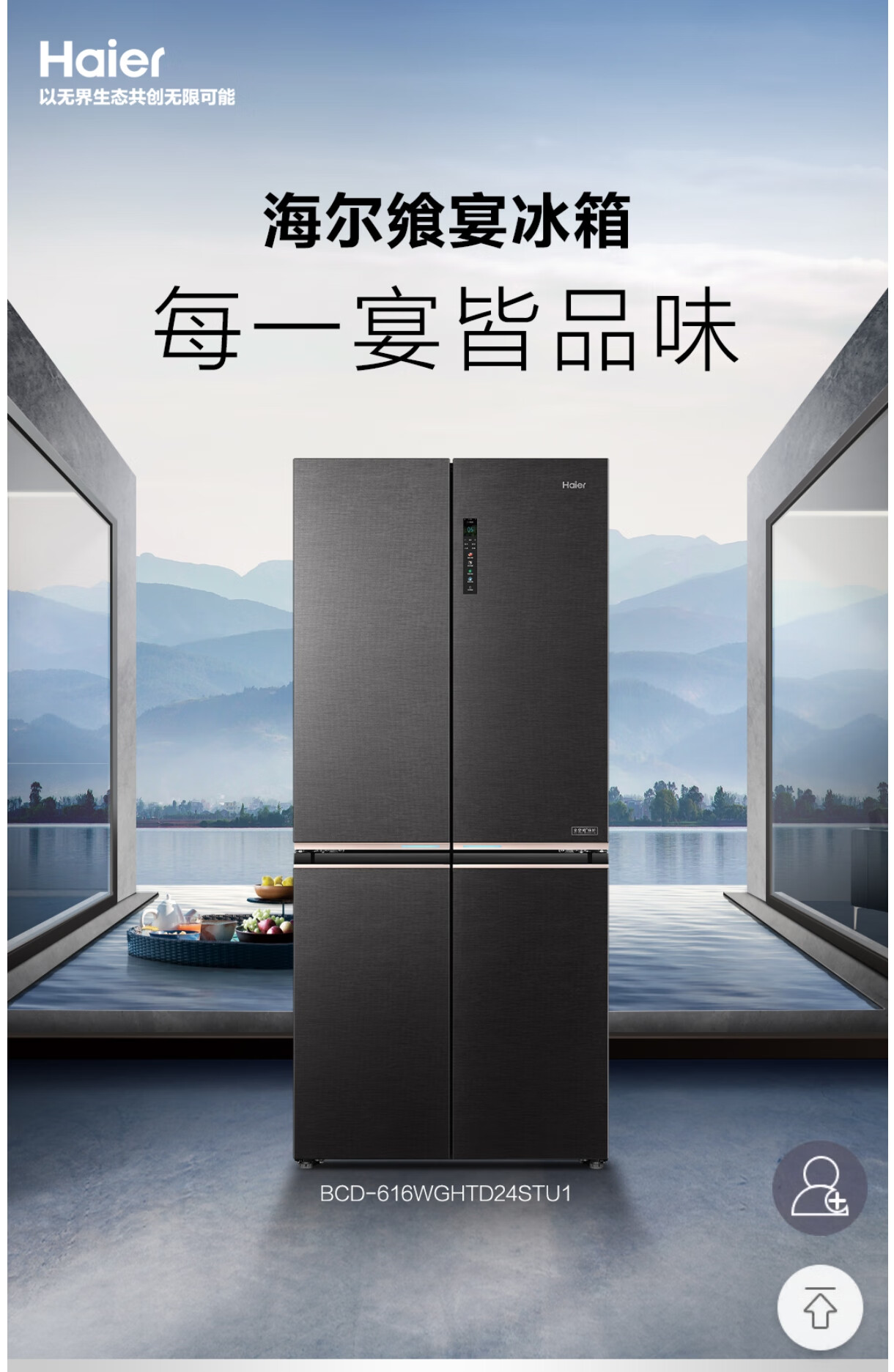 海尔(Haier)BCD-616WGHTD24STU1飨宴零嵌入式十字对开门风冷无霜四门冰箱