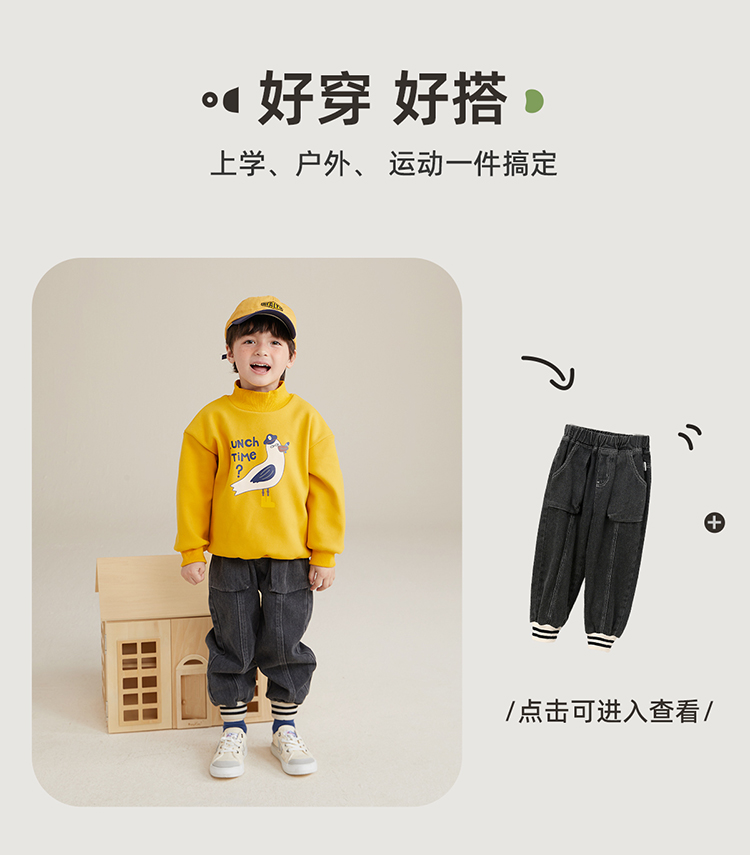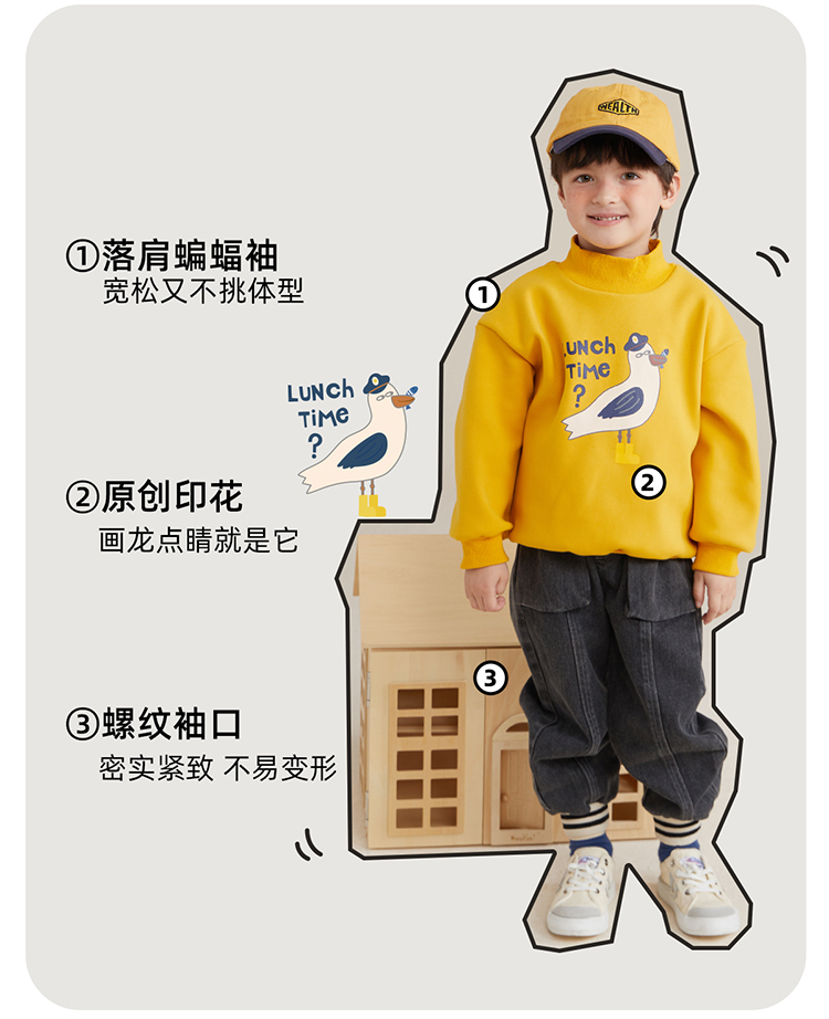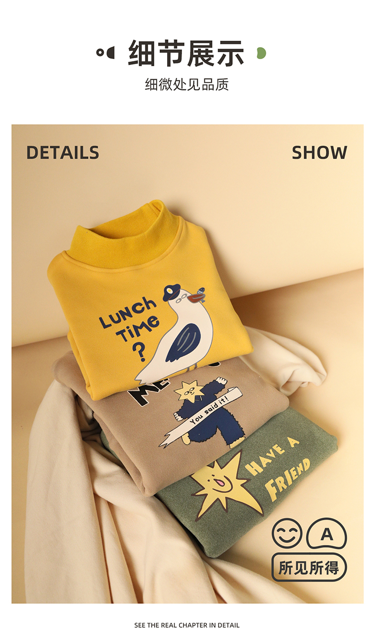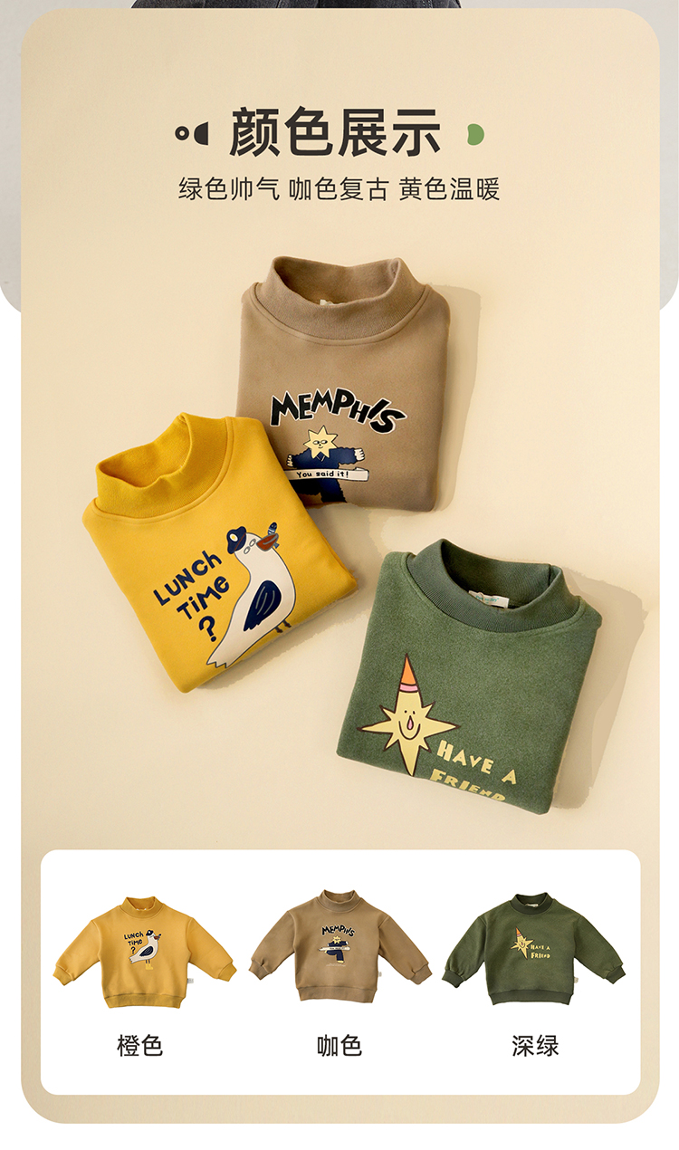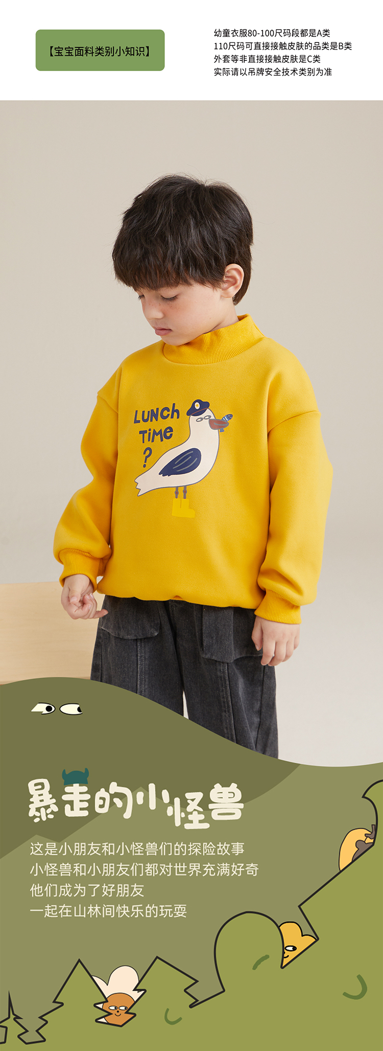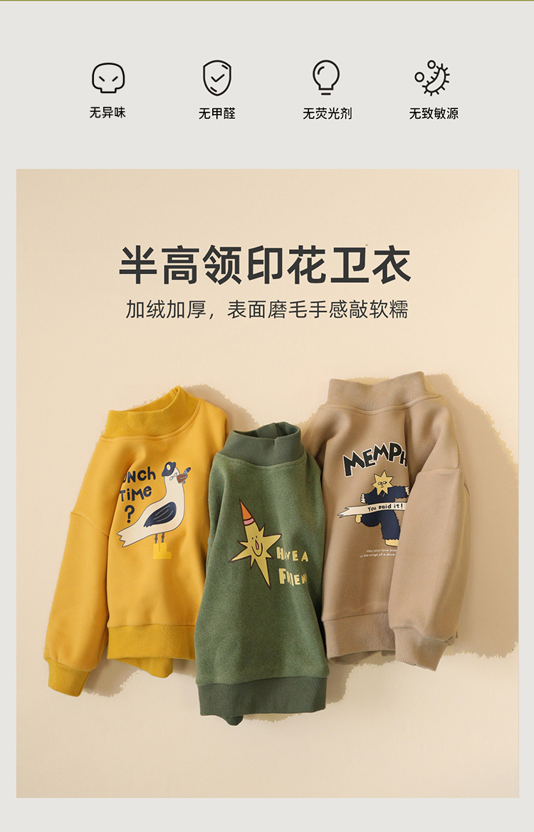 咕噜日记儿童半高领加厚印花卫衣PQWY2108