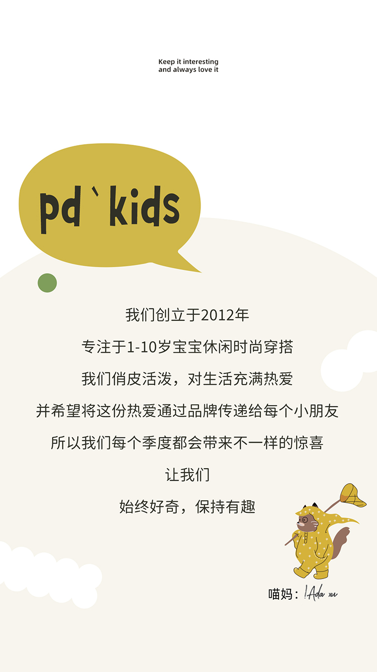 Purrfect-Diary专注于贴近自然随性的穿着概念,轻奢平价的童装文化传播,在产品设计上更加注重婴童穿着的舒适性、安全性、更出众的国际化品牌,将欧美的育婴文化在中国进行深入的传播与推广。