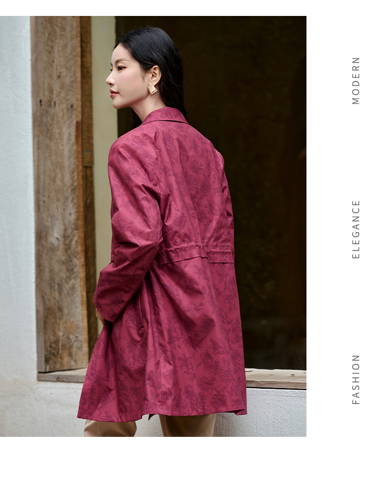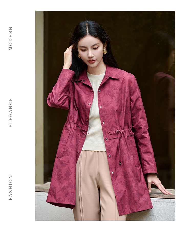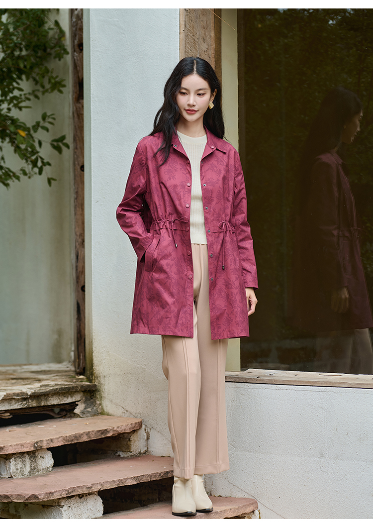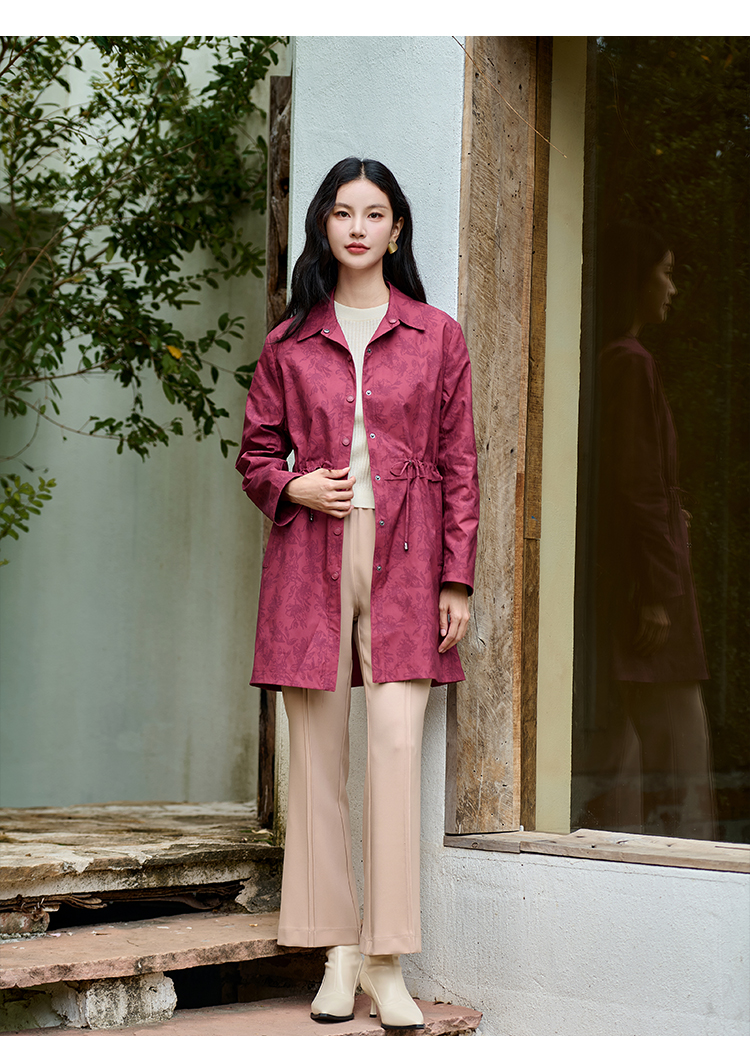 佐尔美经典复古气质抽绳中长款风衣外套女M43FZ20