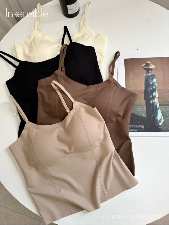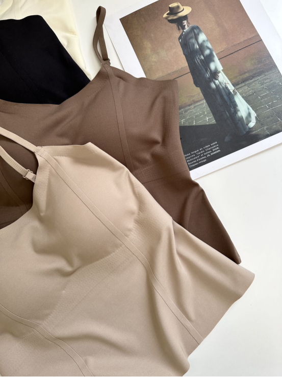 整件背心都是“无痕粘合”工艺,更显精致和品质,不像几十块钱能买到的真的超用心的设计,它是自带“固定杯”胸垫,可以机洗,✅不用烦恼“要穿背心搭配什么内衣”,露出肩带的尴尬不存在