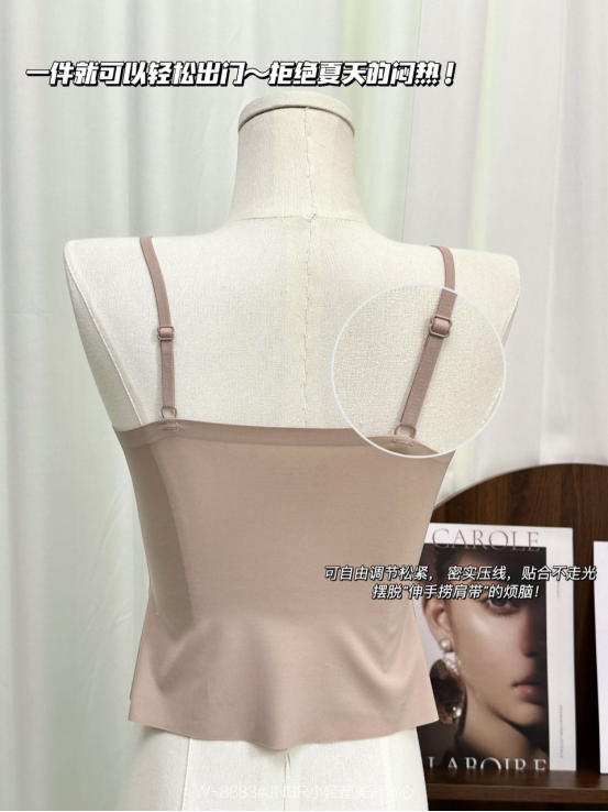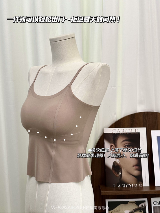 「一体式背心=无钢圈Bra+吊带背心」提拉聚拢,自带胸垫让你不穿内衣,也不空杯,不凸点,穿吊带不就图个🧊清凉好看吗?如果还穿件内衣,想想都觉得热,汗都闷胸里了!