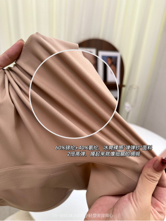 面料,夏天当然选清凉不闷还透气的!这件完/全符合姐妹们的需求, ✅60%锦纶+40%氨纶冰爽裸感“弹弹纱”面料,2倍高弹, 摸起来就像细腻的绸缎,冰爽丝滑,好凉快~0束缚穿上舍不得脱~