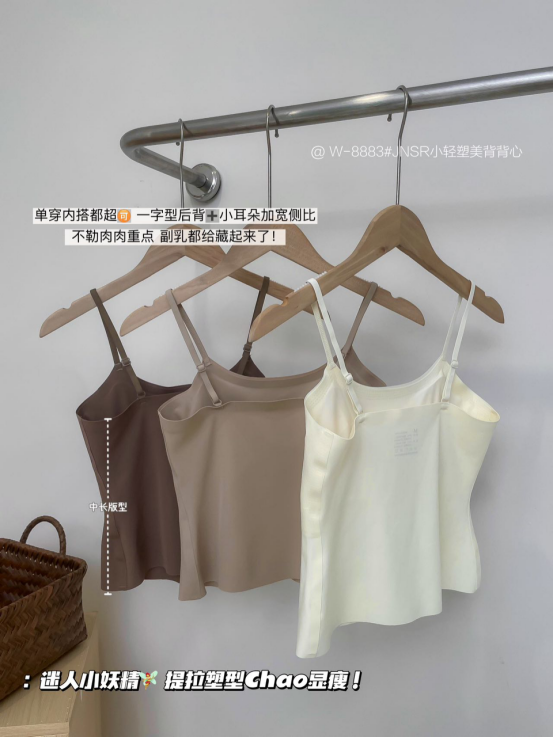 夏天马上到了,衣柜中少不了一件百搭又好穿的美背吊带 外穿时尚,内搭高级,众多明星、博主心头爱,上身秒变时髦精! 除了好看,还有个原因是-“解暑” 毕竟三四十度的高温还要穿又厚又勒的bra真太折磨人了!