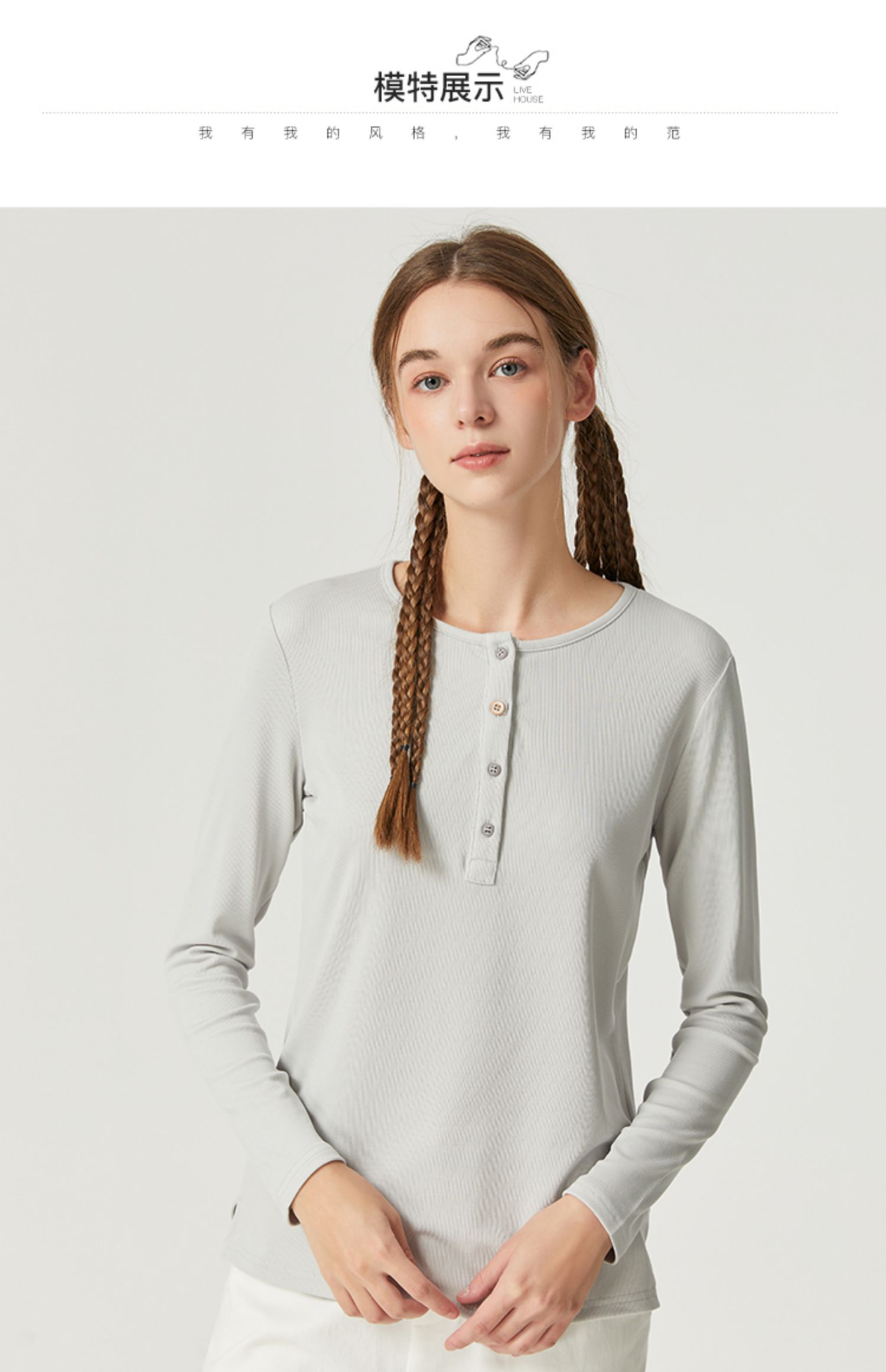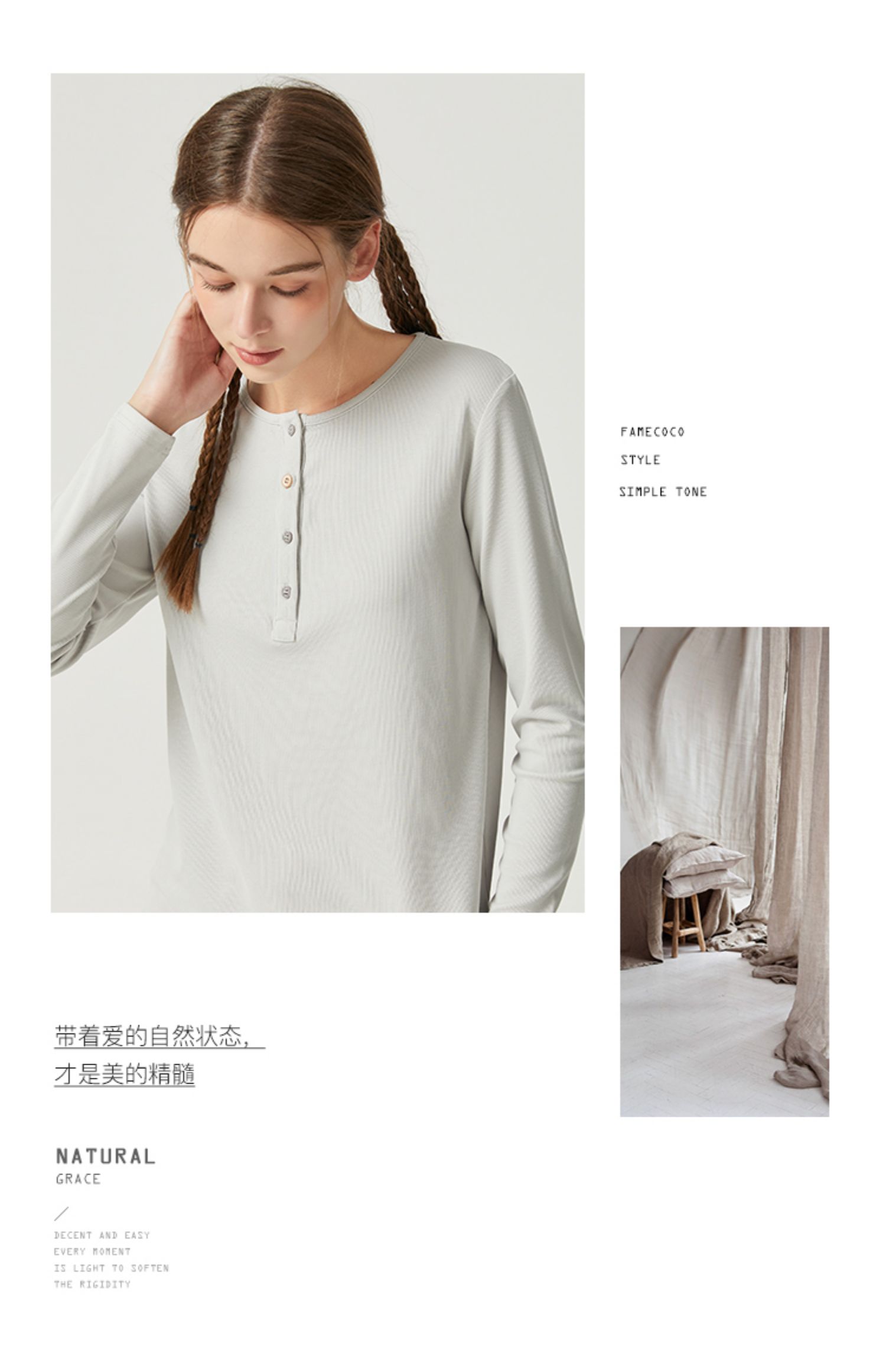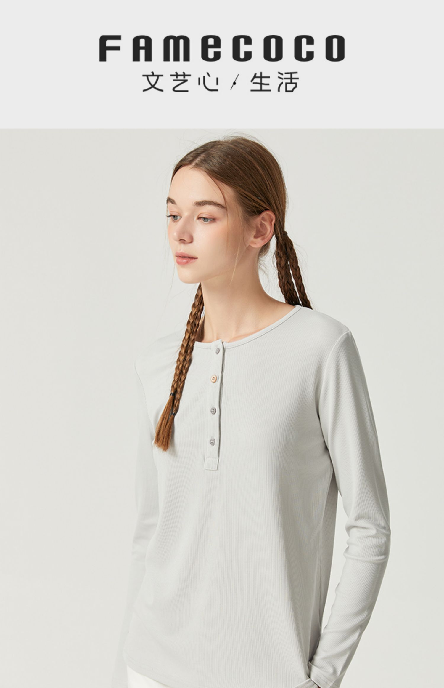 famecoco范可儿女长袖T恤修身早秋常规款圆领针织打底衫D221BB302
