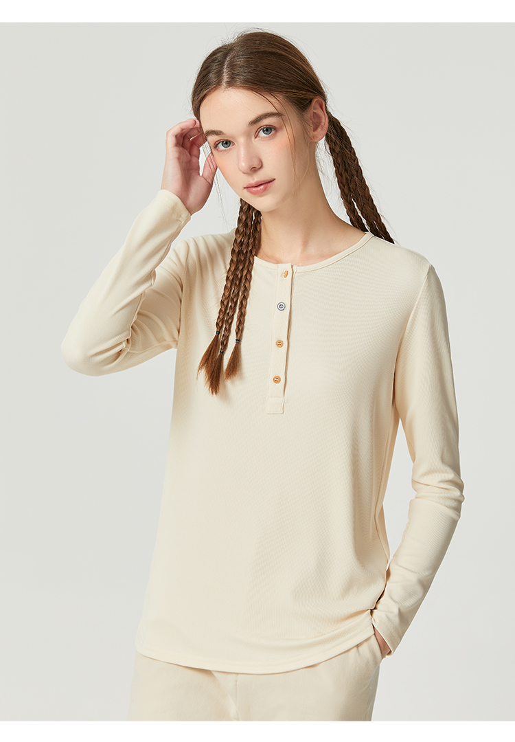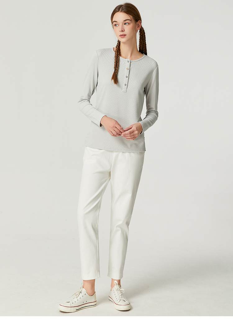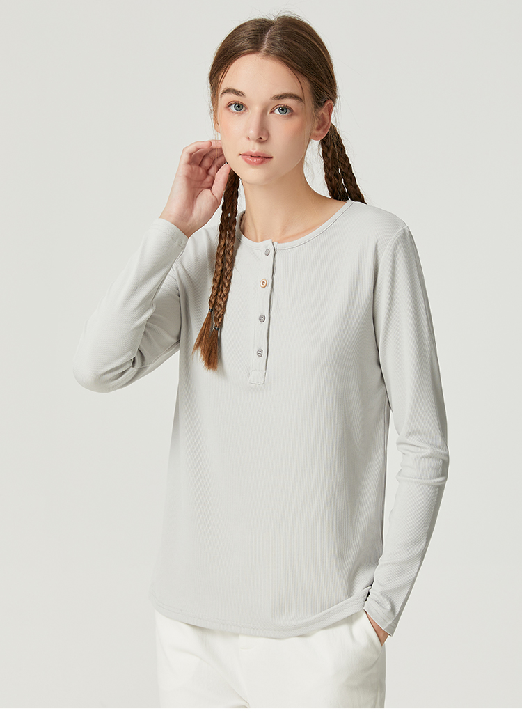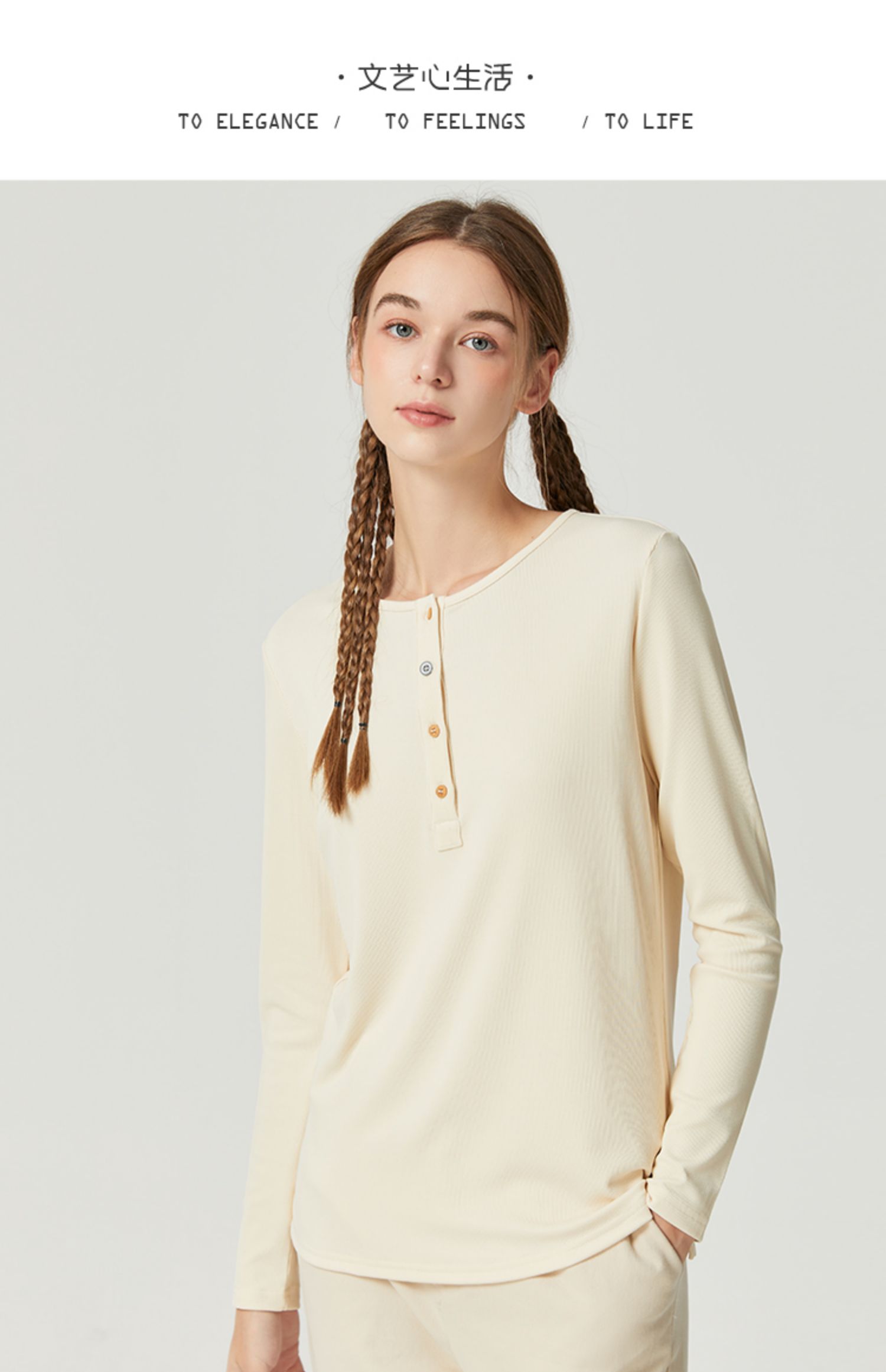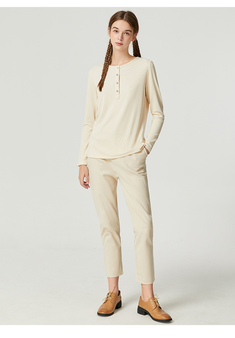 famecoco范可儿女长袖T恤修身早秋常规款圆领针织打底衫D221BB302