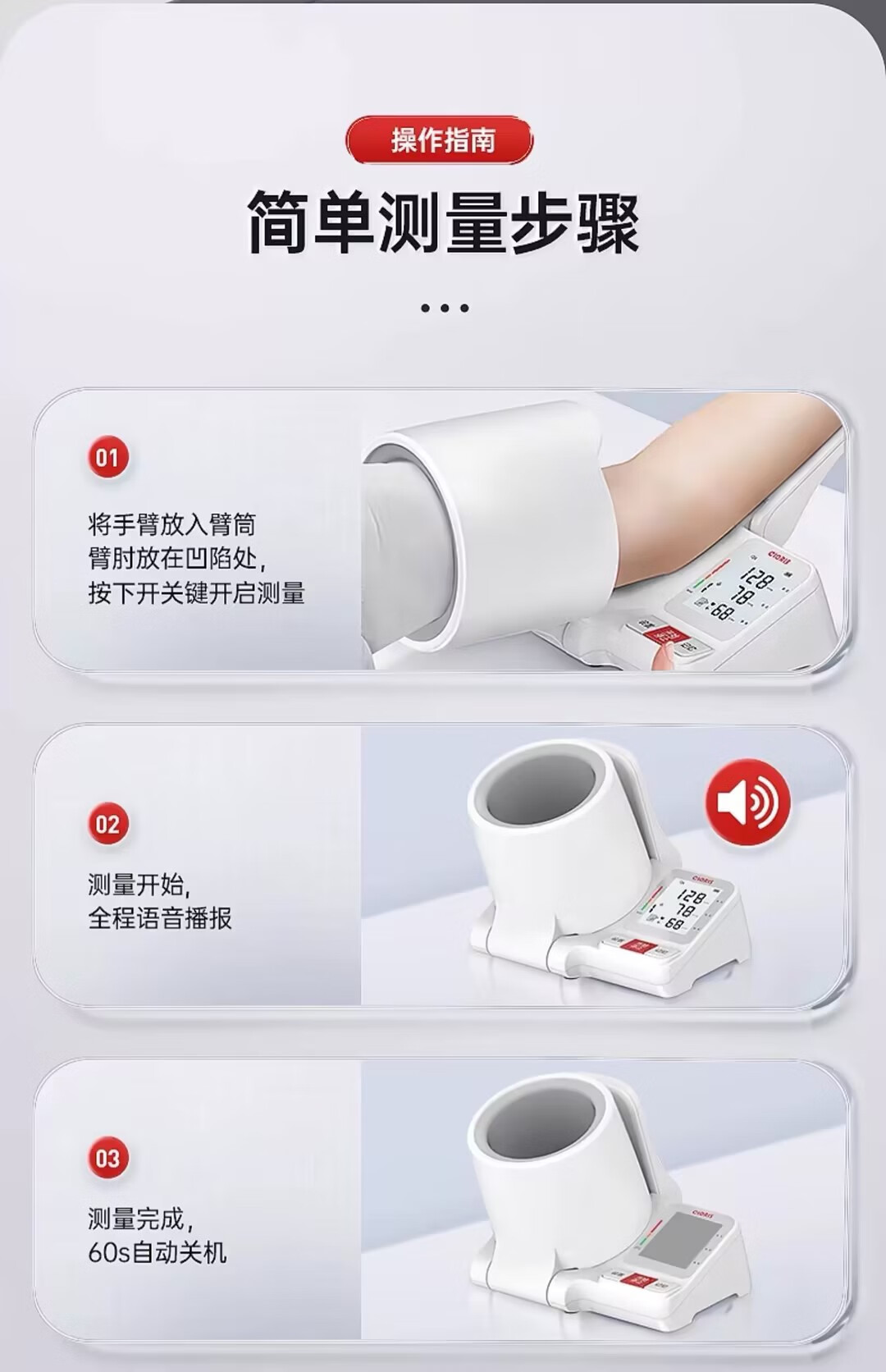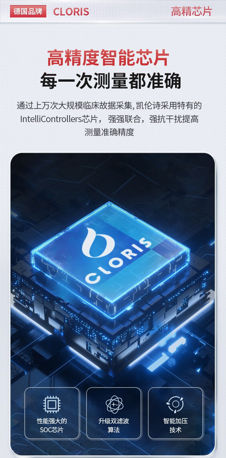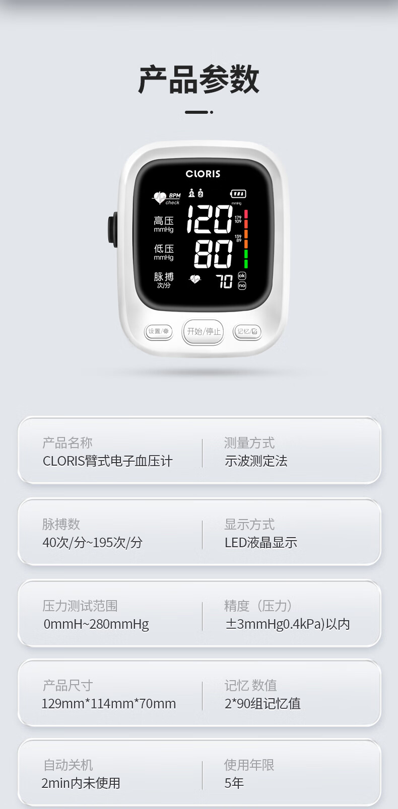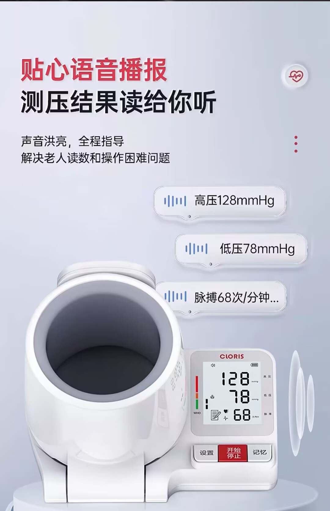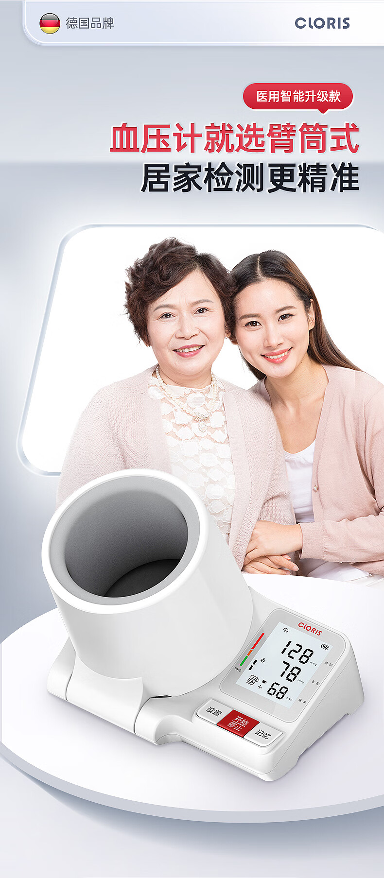 凯伦诗(CLORIS)血压测量仪家用高精准高手腕式电子血压计量血压仪器语音播放便携 臂筒式血压计