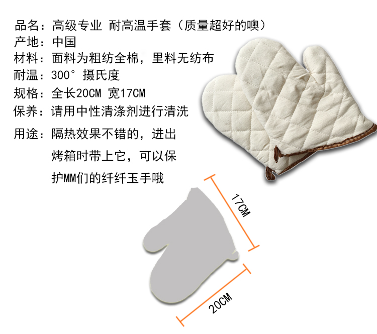 ST-H2加厚厨房烘焙烤箱专用手套粗纺全棉耐高温耐热微波炉隔热烤炉手套ST-H2
