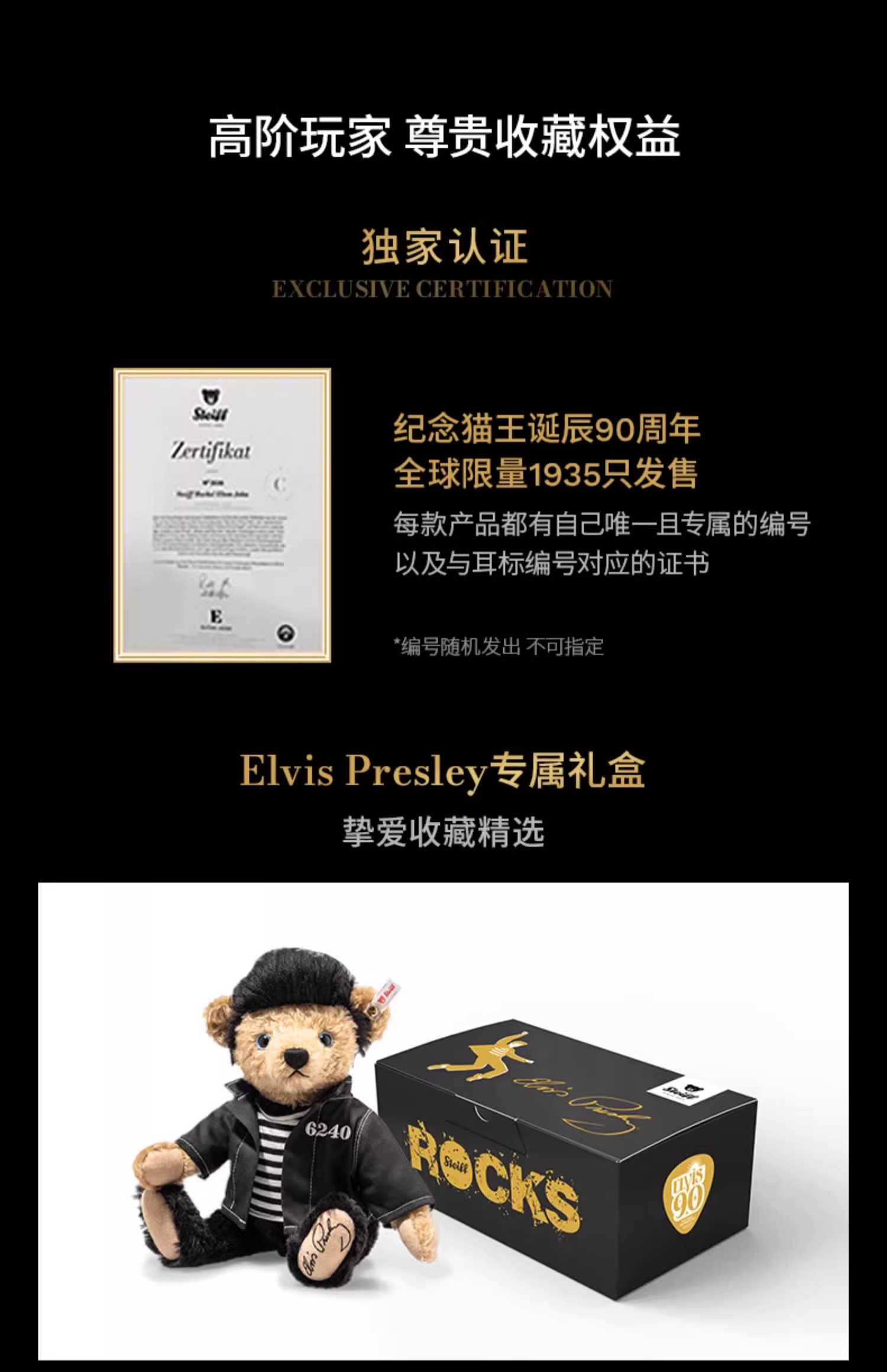 Steiff 收藏限量版-埃尔维斯·普雷斯利90周年泰迪熊35厘米STEC356261