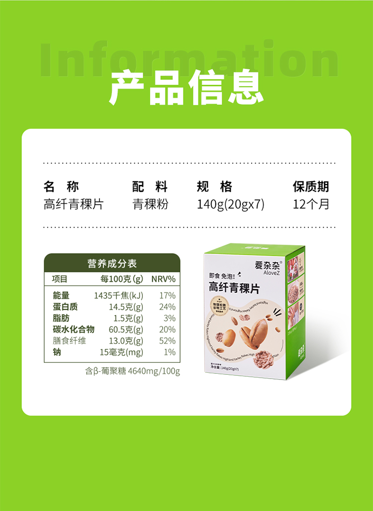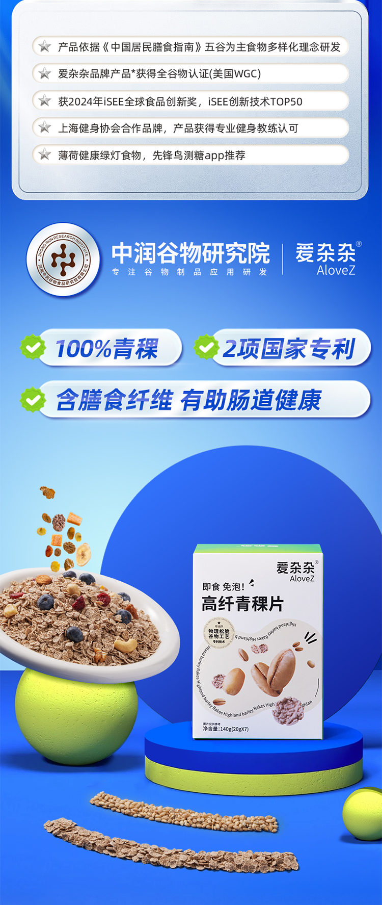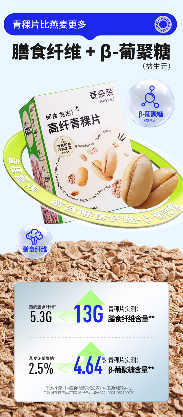 爱杂杂青稞即食麦片含益生元高纤维慢碳水低脂糖友孕妇健身早餐代餐轻食