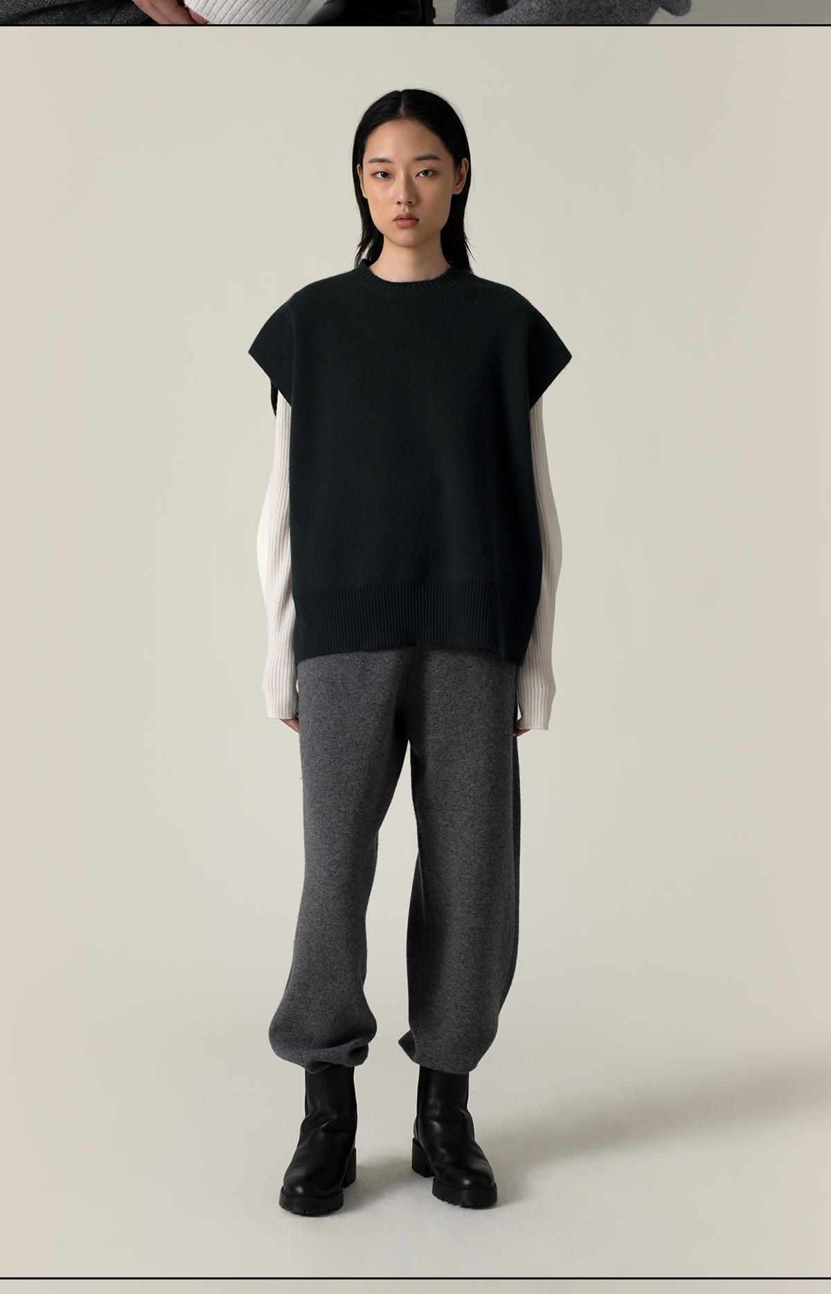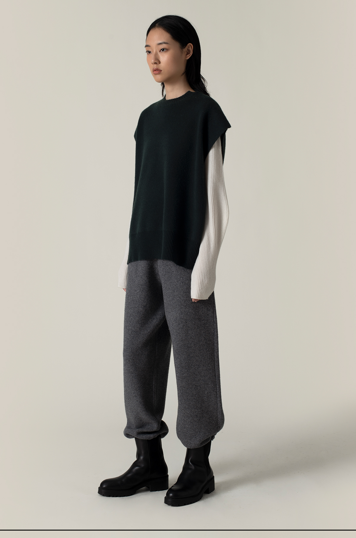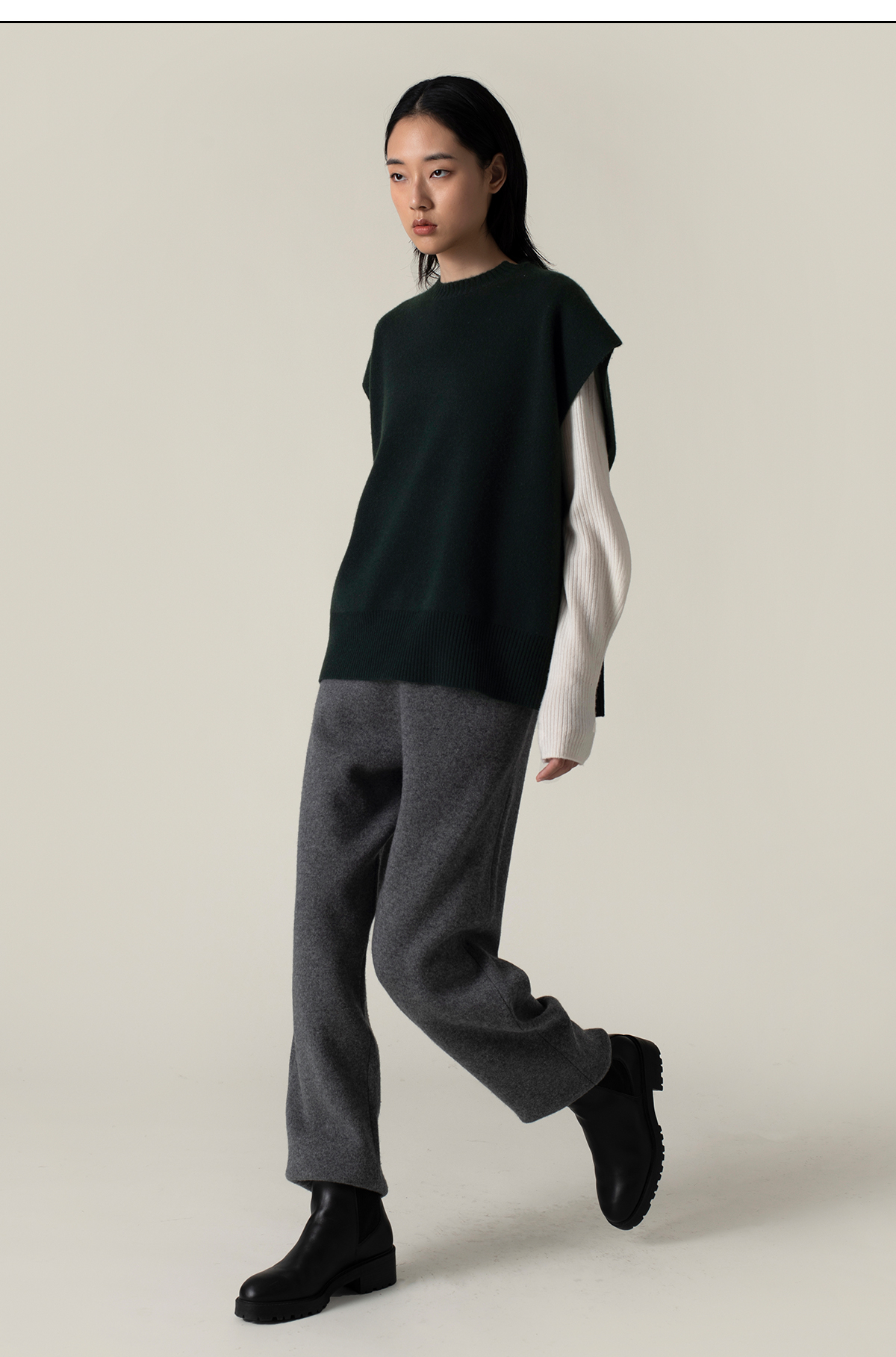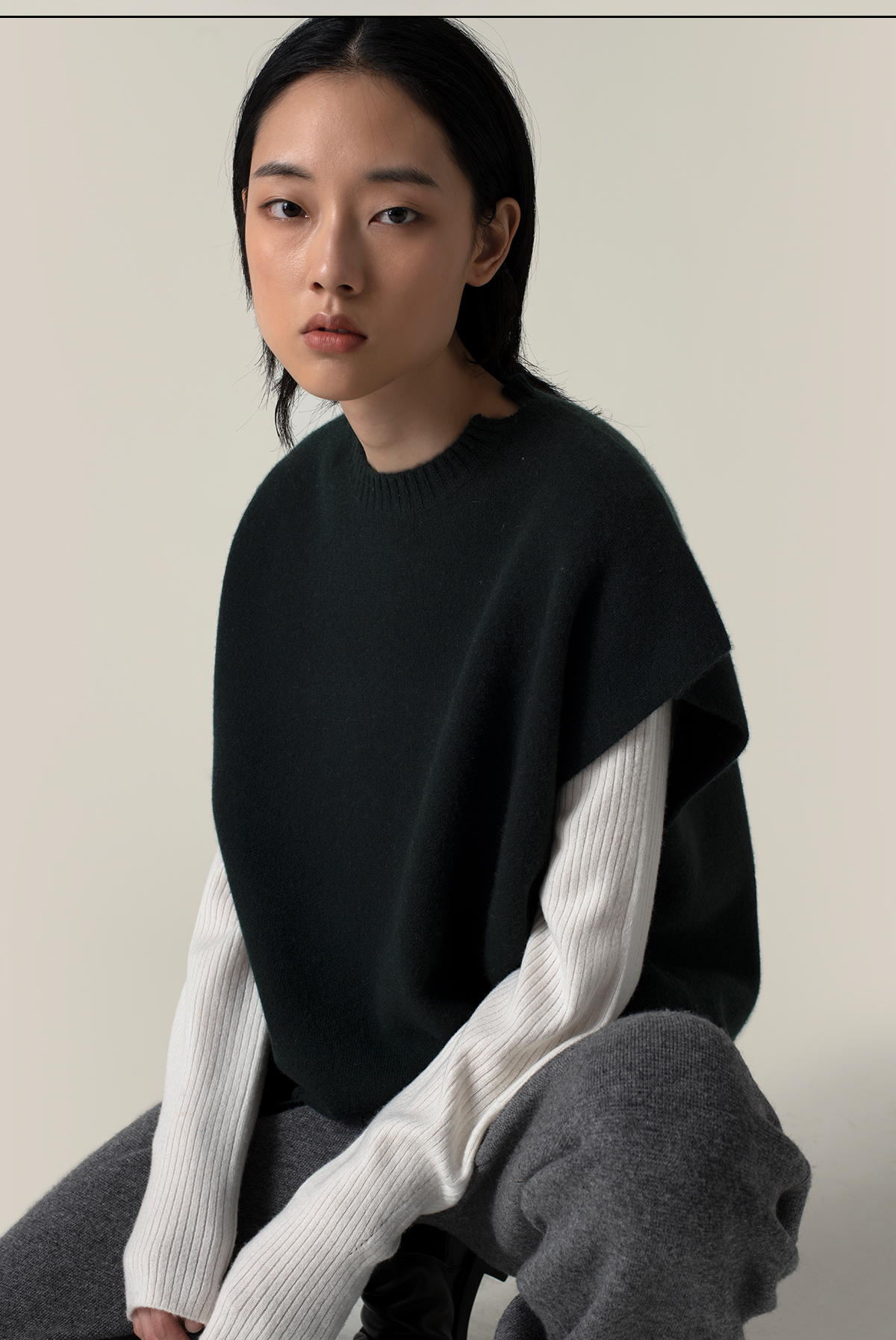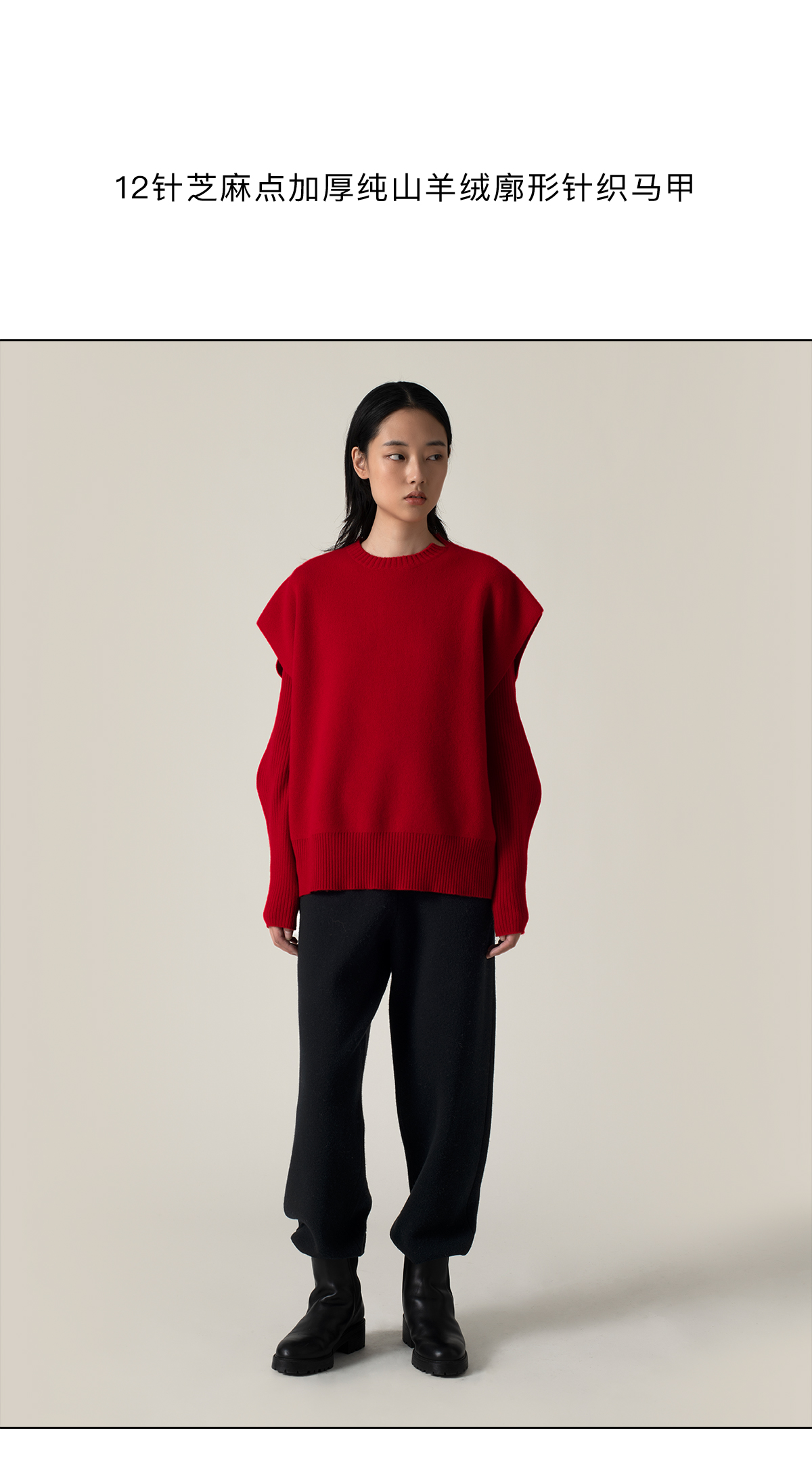 322工房造型叠搭加厚纯山羊绒廓形针织马甲2022新款纯色马甲A956