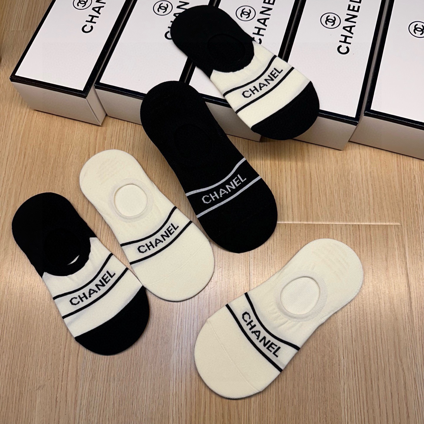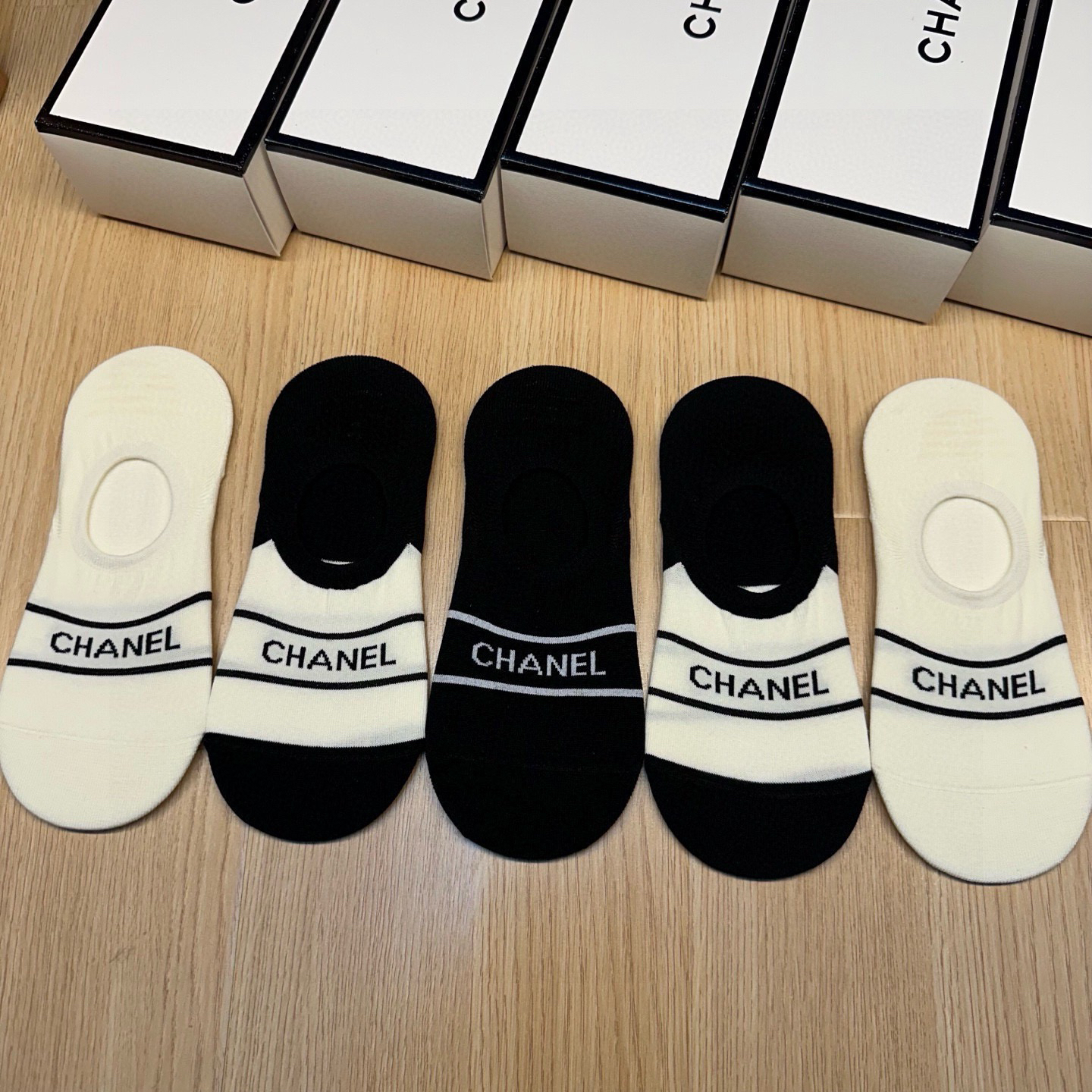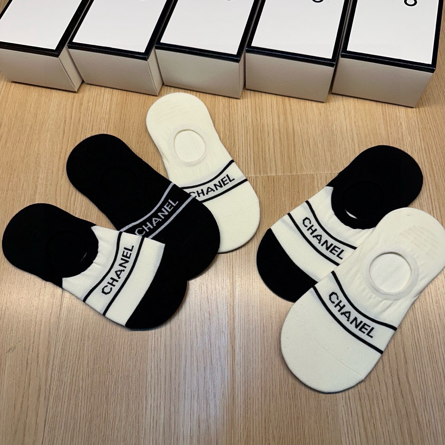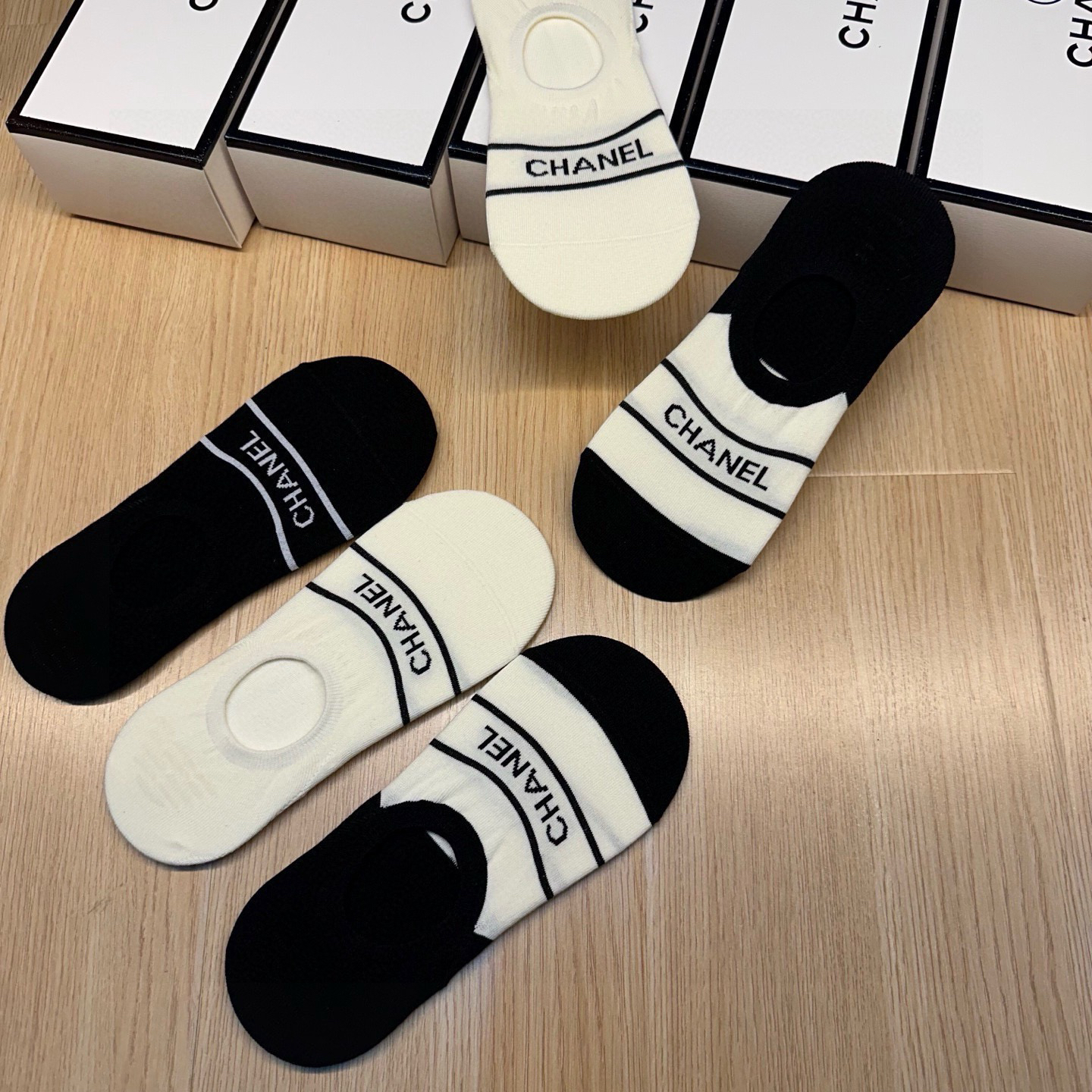 秋冬特惠💰130 香奈儿袜子 CH新品女款隐形袜子【一盒五双】提花经典字母标志,纯棉材质,超舒适超美腻 大牌出街,潮人必备 超好搭
