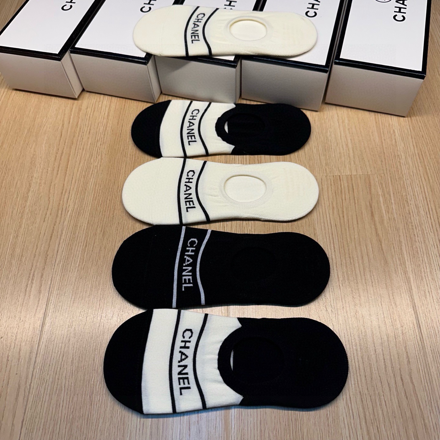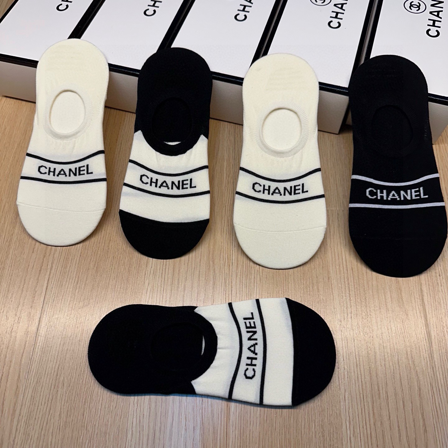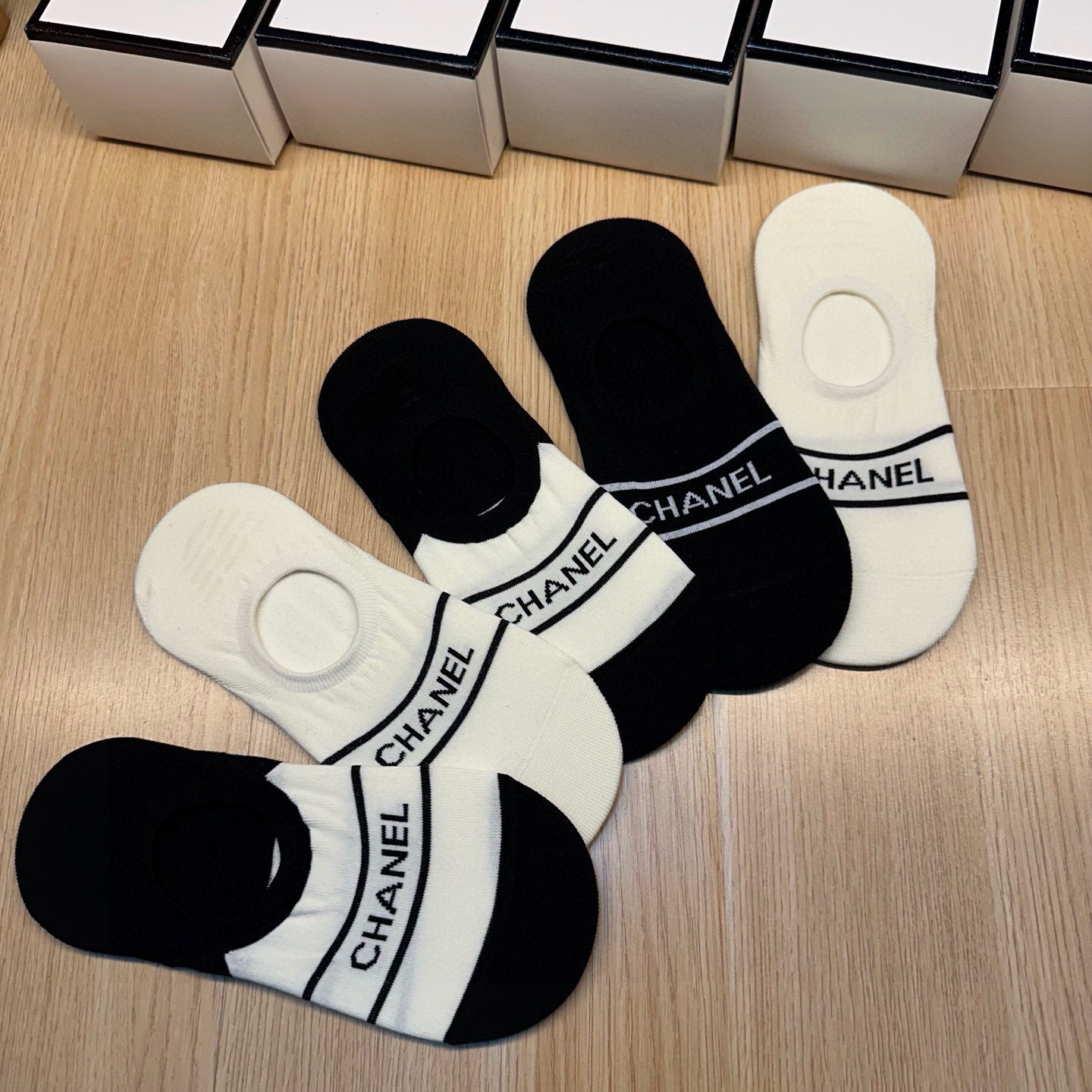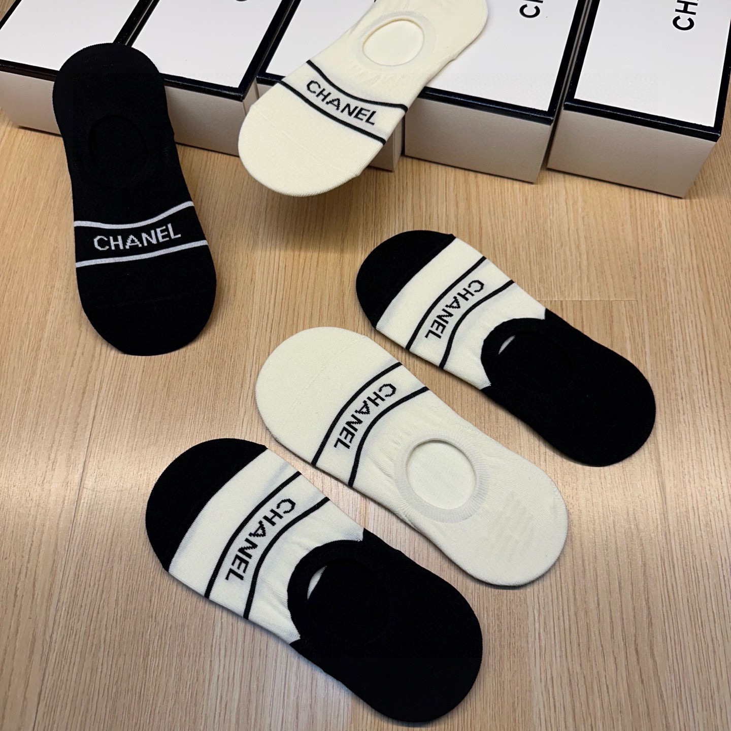 秋冬特惠💰130 香奈儿袜子 CH新品女款隐形袜子【一盒五双】提花经典字母标志,纯棉材质,超舒适超美腻 大牌出街,潮人必备 超好搭