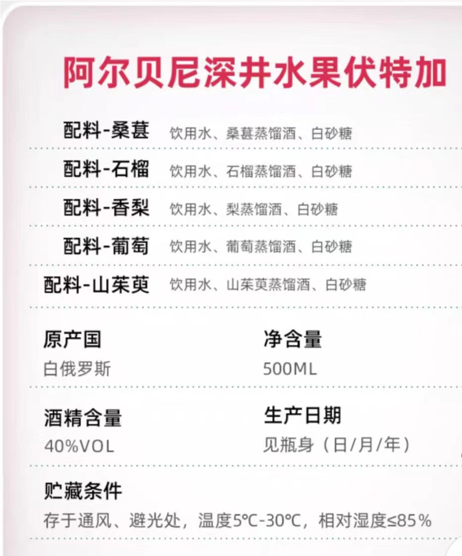 【中欧班列直供】WWJ 俄罗斯进口深井水果味伏特加 5种口味选择 500毫升 /瓶 葡萄味、蔓越莓味、梨味、桑葚味、石榴味