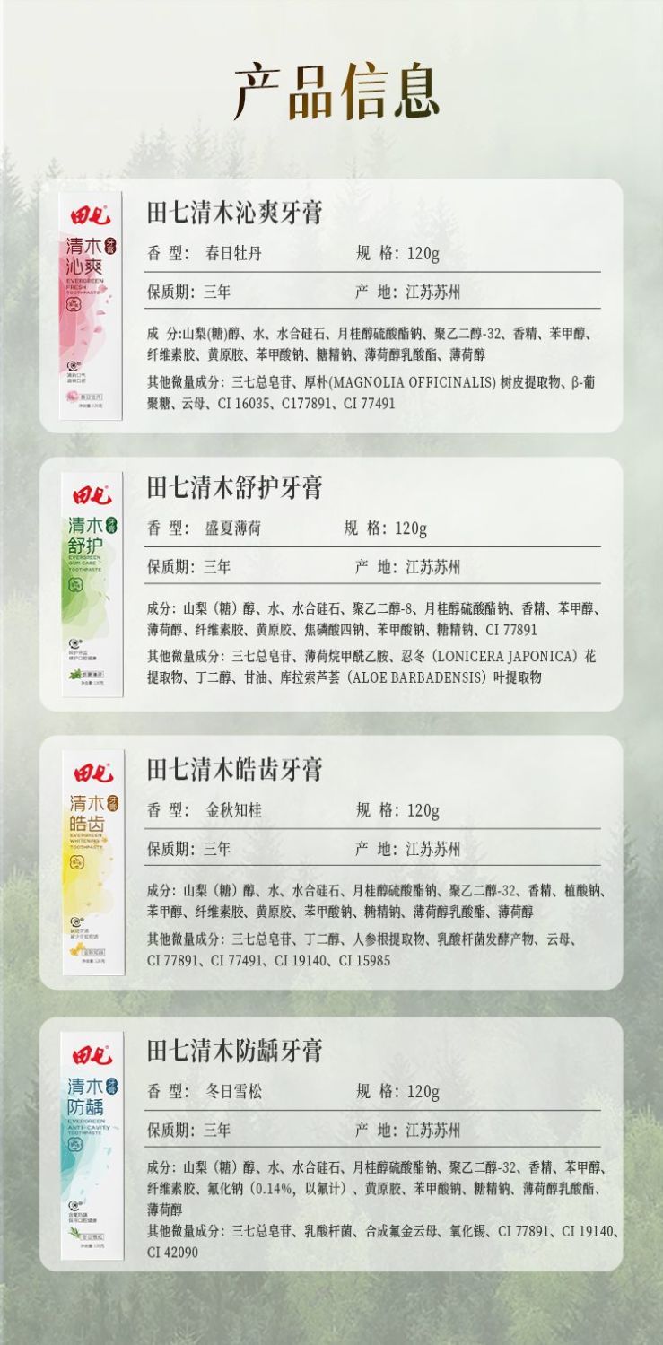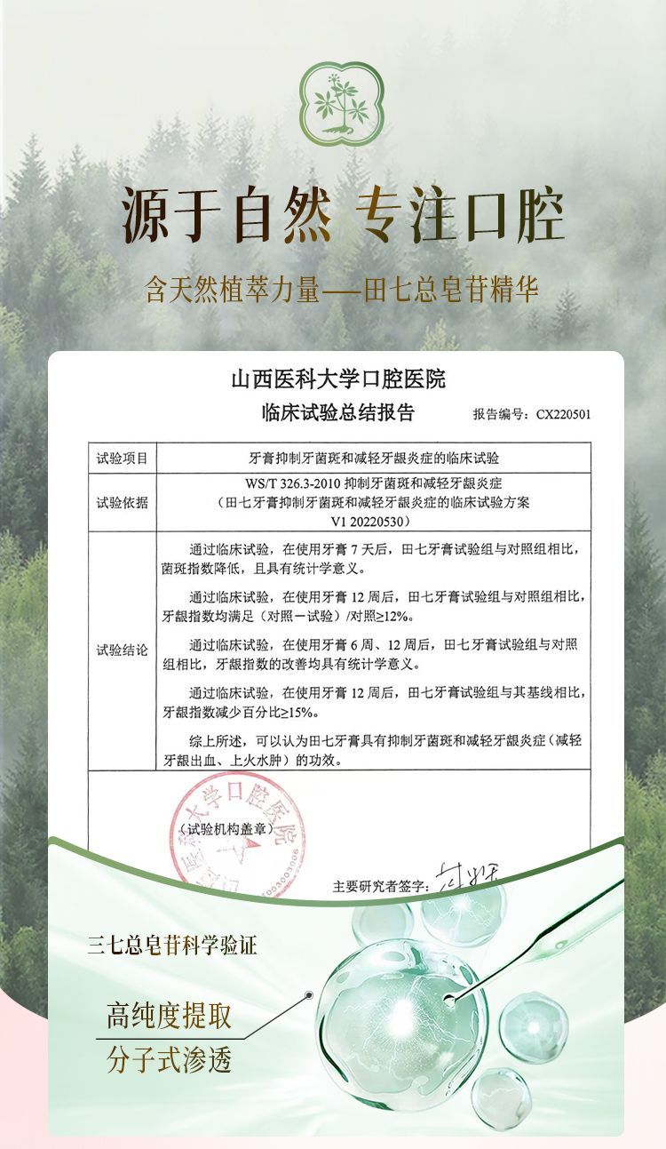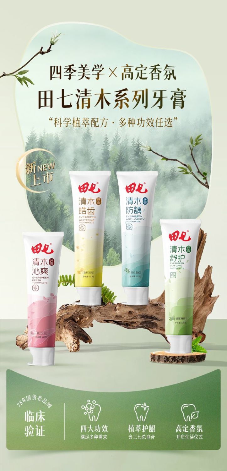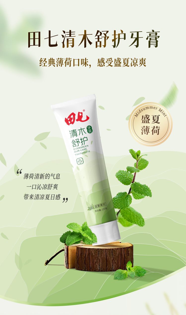 田七牙膏清木皓齿沁爽牙膏清新口气清洁口腔益生元清火防龋正品