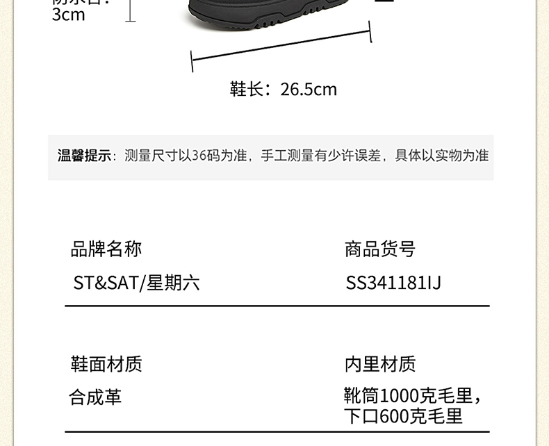 星期六时尚简约百搭厚绒保暖雪地靴SS341181IJ