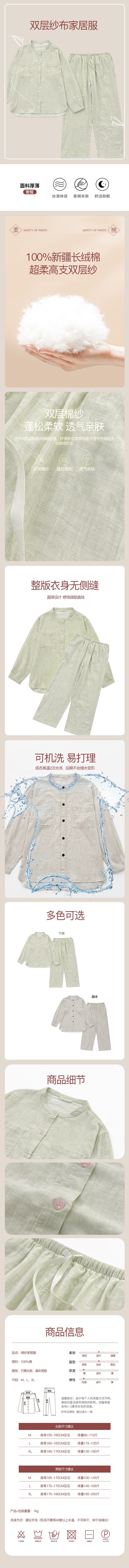 KINGCO新款家居服--双层纱 棉小方