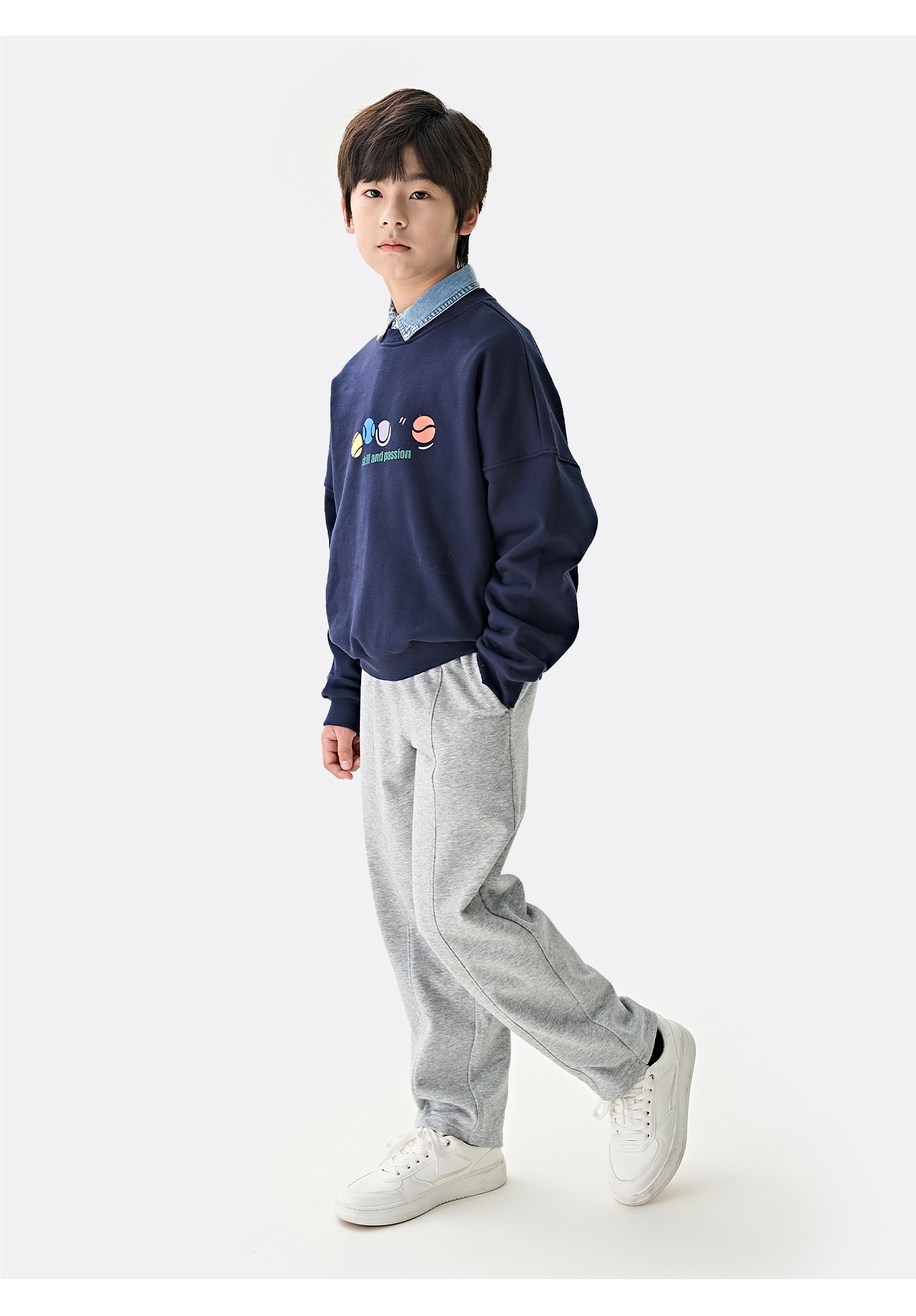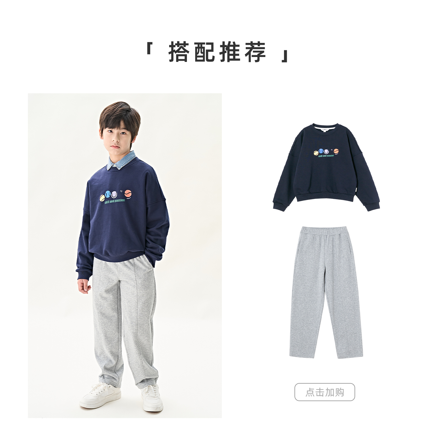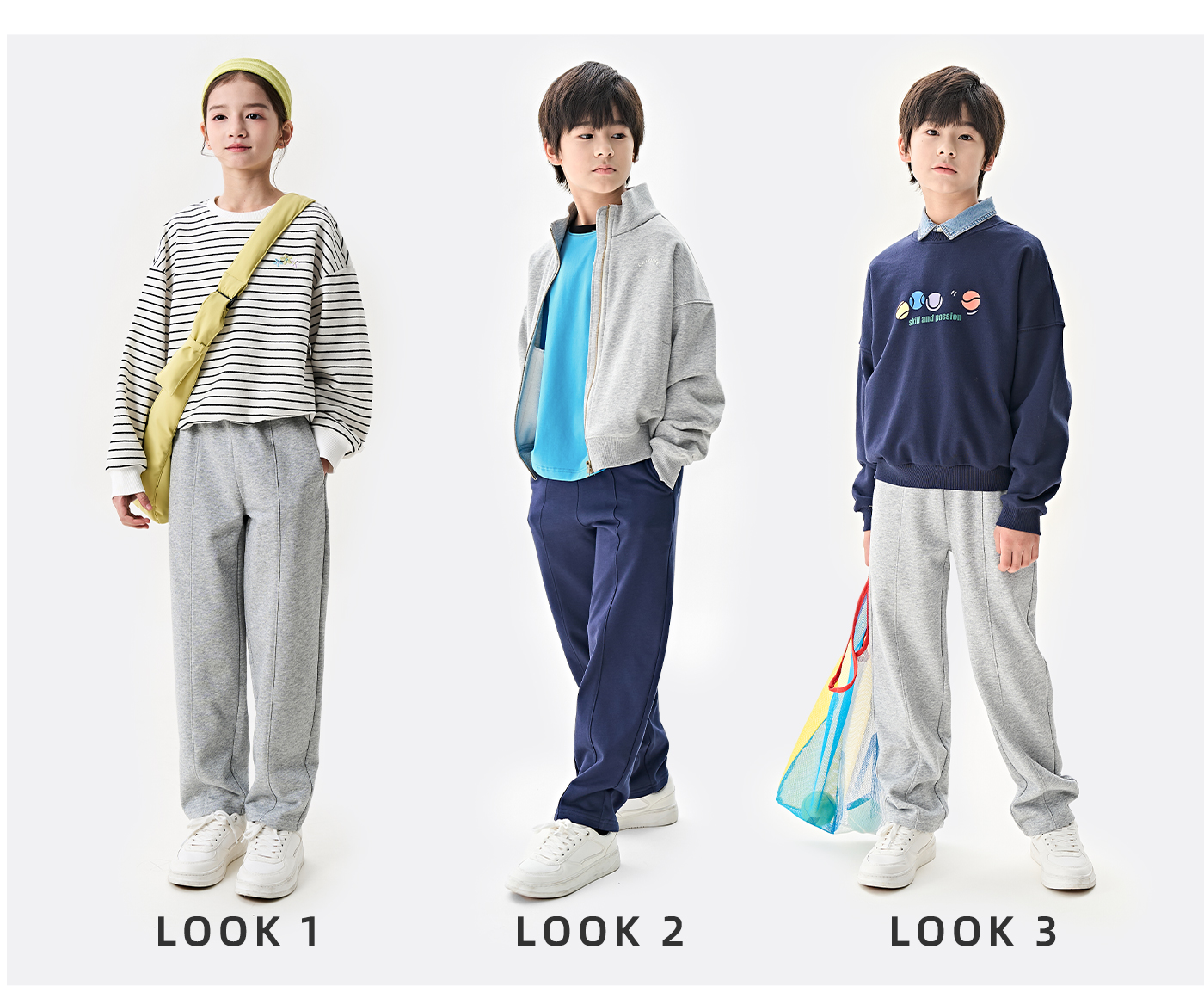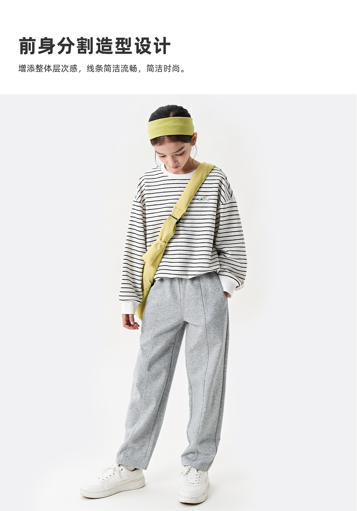 棉叔叔儿童校服裤春季新款毛圈卫裤362181001 | 轻盈保暖、内里小毛圈细腻亲肤、穿着舒适、微宽松萝卜裤型设计、包容性强、经典百搭